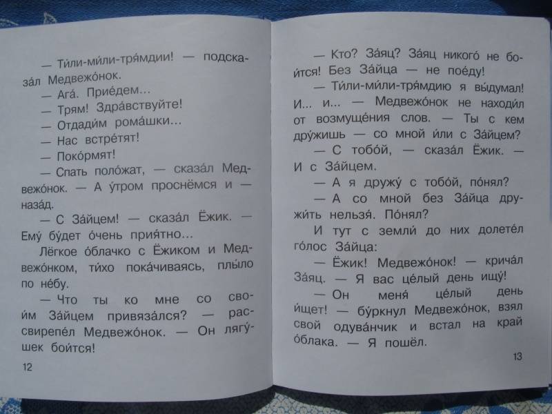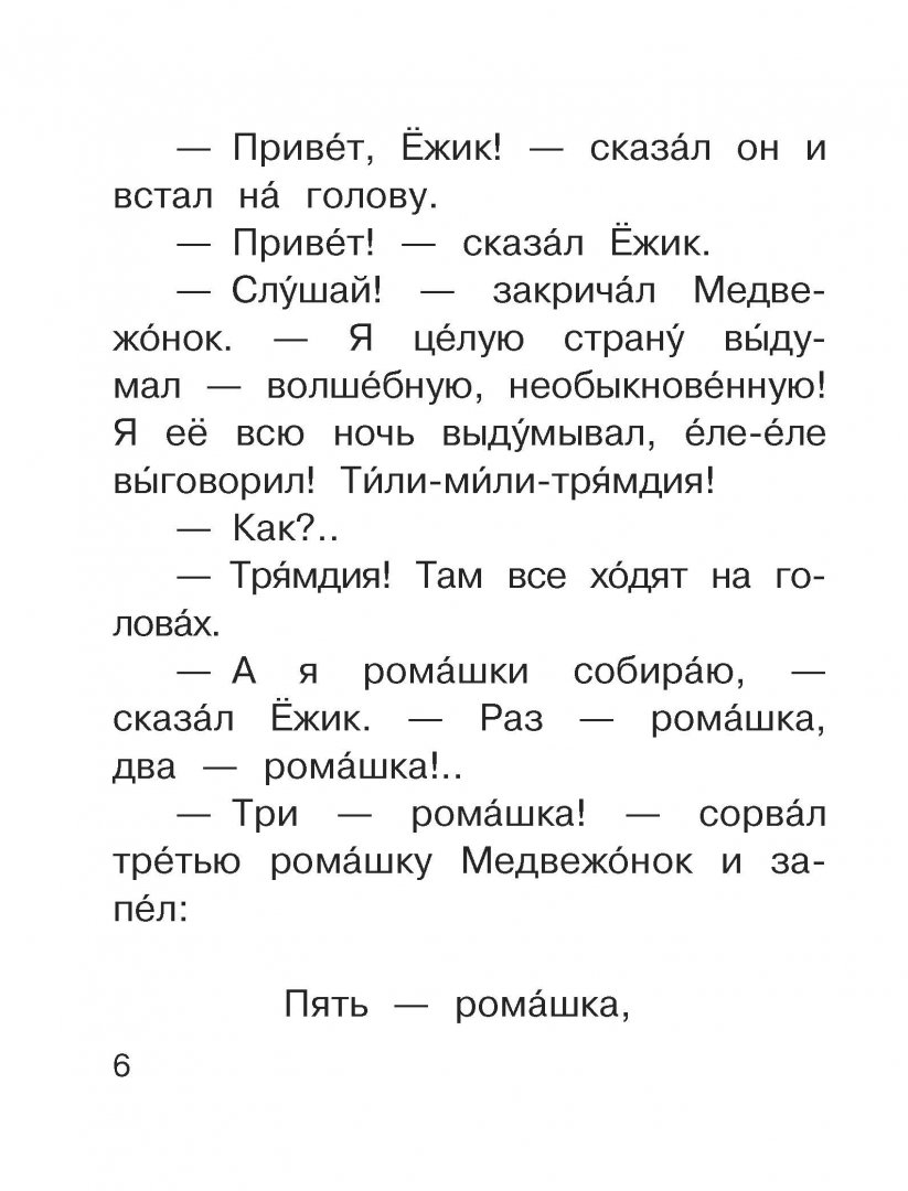 ОписаниеЖил-был Ёжик. И был у него друг - Медвежонок. Много интересного и чудесного происходило с друзьями - то они летели на одуванчиках в Тили-мили-трямдию, то протирали звёзды, то ловили на удочку луну... Поэтичные и трогательные сказки С. Козлова любимы многими поколениями читателей. Ваш ребёнок с удовольствием прочитает эти замечательные сказки самостоятельно, ведь в книге крупный шрифт и все слова с ударениями!Для дошкольного возраста.Жил-был Ёжик. И был у него друг - Медвежонок. Много интересного и чудесного происходило с друзьями - то они летели на одуванчиках в Тили-мили-трямдию, то протирали звёзды, то ловили на удочку луну... Поэтичные и трогательные сказки С. Козлова любимы многими поколениями читателей. Ваш ребёнок с удовольствием прочитает эти замечательные сказки самостоятельно, ведь в книге крупный шрифт и все слова с ударениями!Для дошкольного возраста.