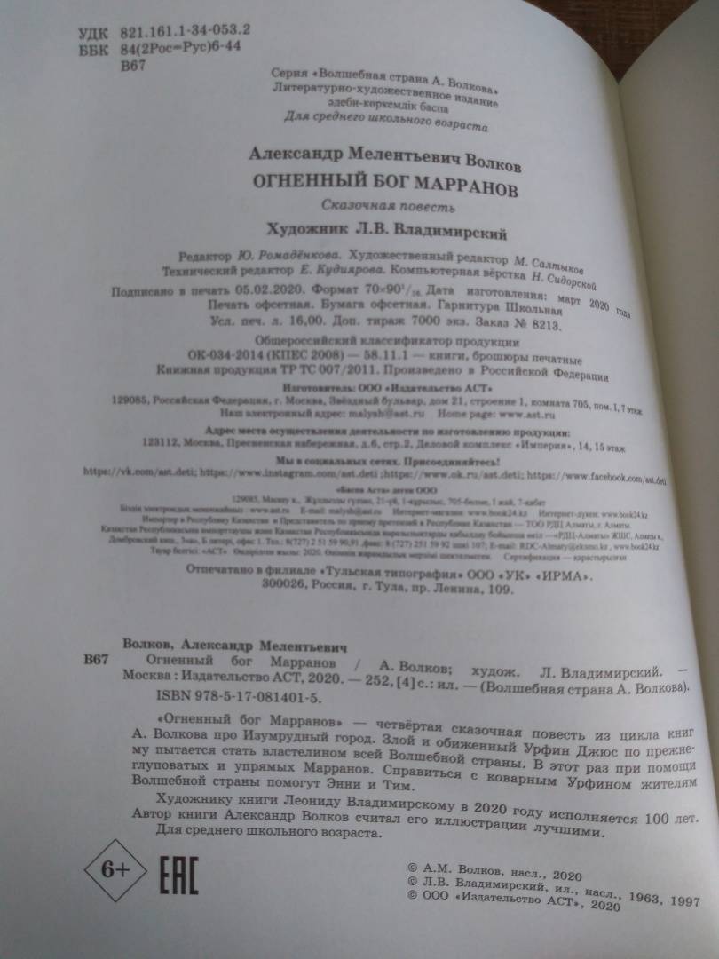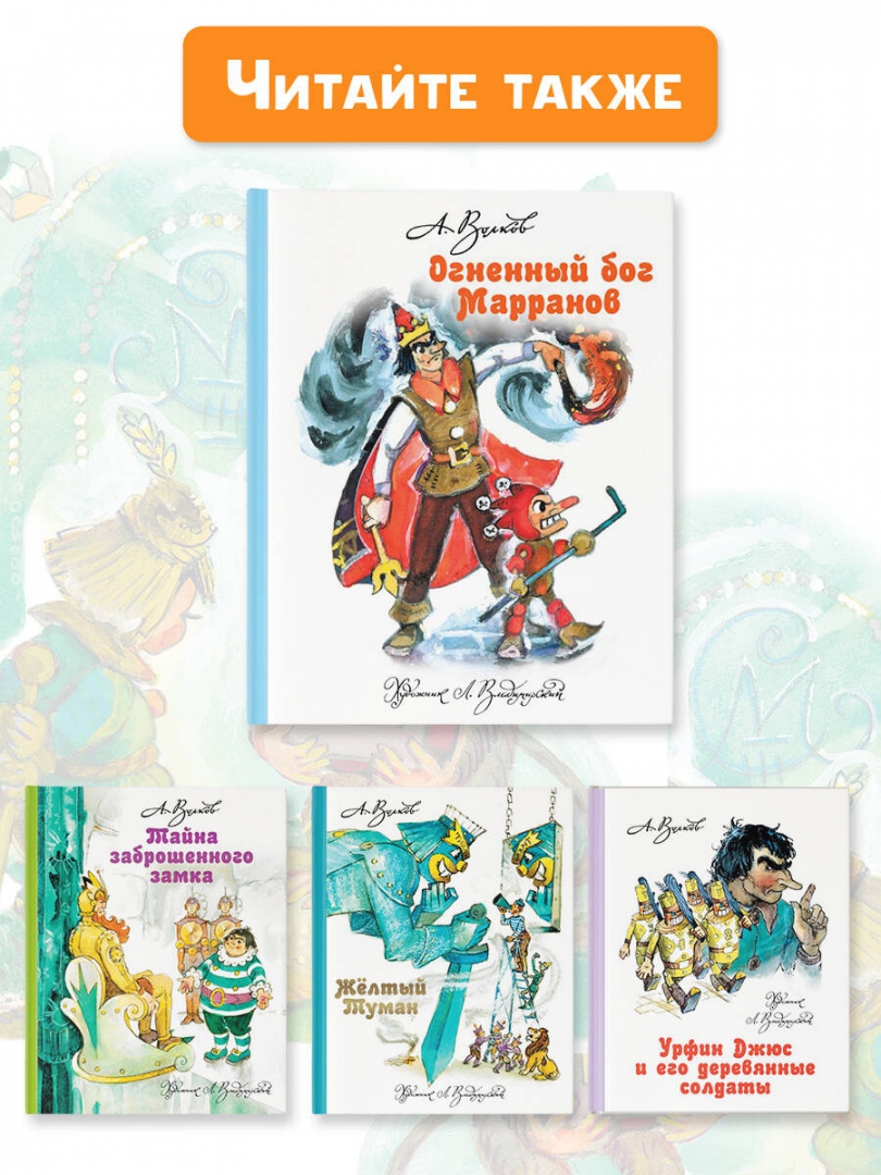 Объем, стр. 256 ISBN 978-5-17-081401-5 Автор Волков Александр Мелентьевич, Владимирский Леонид Викторович Художник Владимирский Леонид Викторович Серия Волшебная страна А. Волкова Год издания книги 2020 Тип обложки Твердый переплет Иллюстрации Цветные Вес, г 542г Размеры 216х172х21 мм - Отзывы