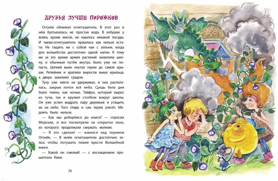 ОписаниеВ новой книге Татьяны Коваль вас ждет встреча с любимыми героями сказки "Когда Дед Мороз был маленьким".В Тривосьмом царстве начинается новый учебный год. Гуселька, Морозик, Хлюп, Кики, колобок Коля и Огонёк снова сели за парты. Только в школе творится что-то странное... То учебники пропадут, то вещи сами на люстре развесятся, то цветы под подушкой появятся. Кто же всё это вытворяет? Оказывается, в волшебном тереме поселился маленький домовёнок Веник. Он со своим другом, мышонком Сыроежкой, тайком пробрался в школу, чтобы вызнать волшебное заклинание и стать лучшим в мире домовым! Но с Волшебной книгой шутки плохи. Рассердилась она на домовёнка и проглотила его! Смогут ли друзья вызволить Веника? Читайте и узнаете!Для дошкольного возраста.В новой книге Татьяны Коваль вас ждет встреча с любимыми героями сказки "Когда Дед Мороз был маленьким".В Тривосьмом царстве начинается новый учебный год. Гуселька, Морозик, Хлюп, Кики, колобок Коля и Огонёк снова сели за парты. Только в школе творится что-то странное... То учебники пропадут, то вещи сами на люстре развесятся, то цветы под подушкой появятся. Кто же всё это вытворяет? Оказывается, в волшебном тереме поселился маленький домовёнок Веник. Он со своим другом, мышонком Сыроежкой, тайком пробрался в школу, чтобы вызнать волшебное заклинание и стать лучшим в мире домовым! Но с Волшебной книгой шутки плохи. Рассердилась она на домовёнка и проглотила его! Смогут ли друзья вызволить Веника? Читайте и узнаете!Для дошкольного возраста.