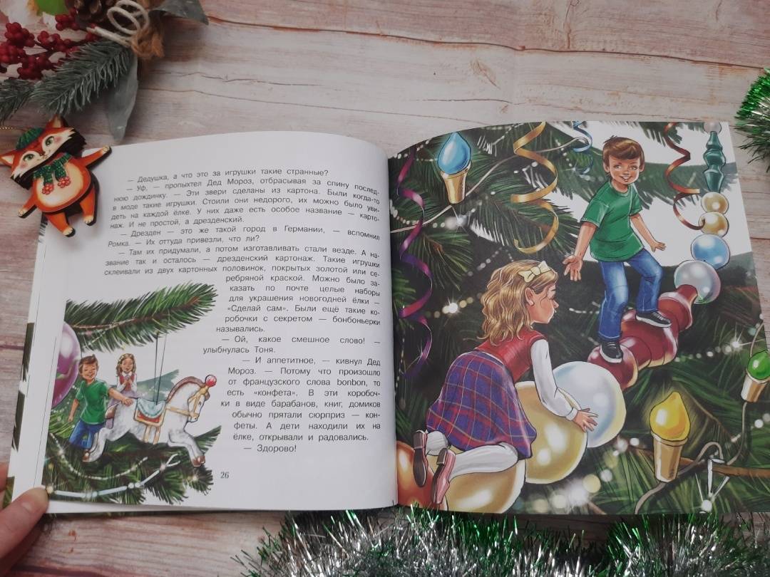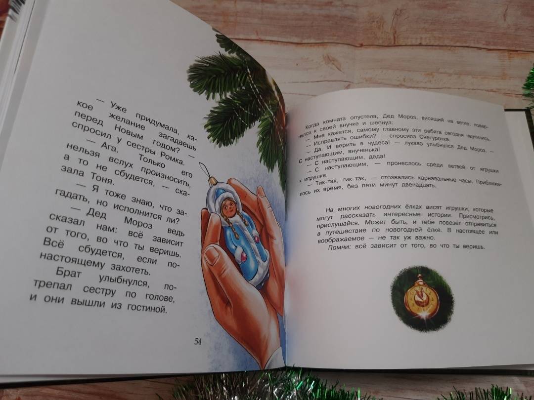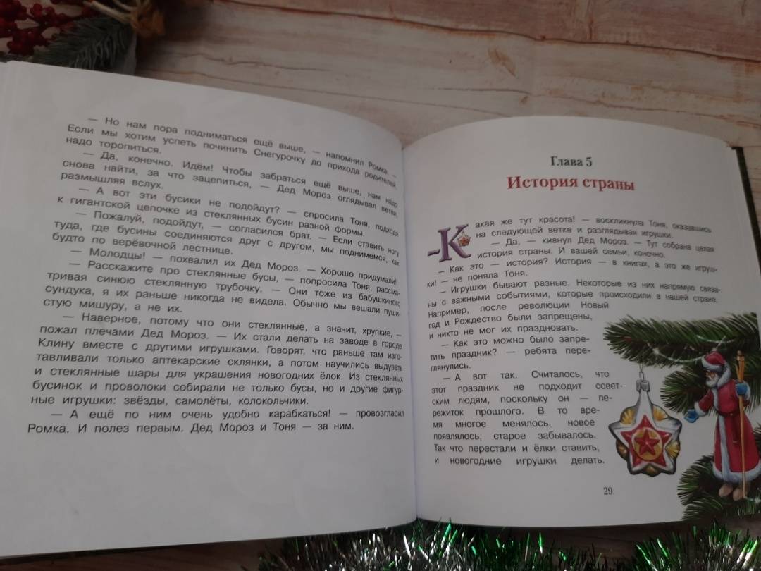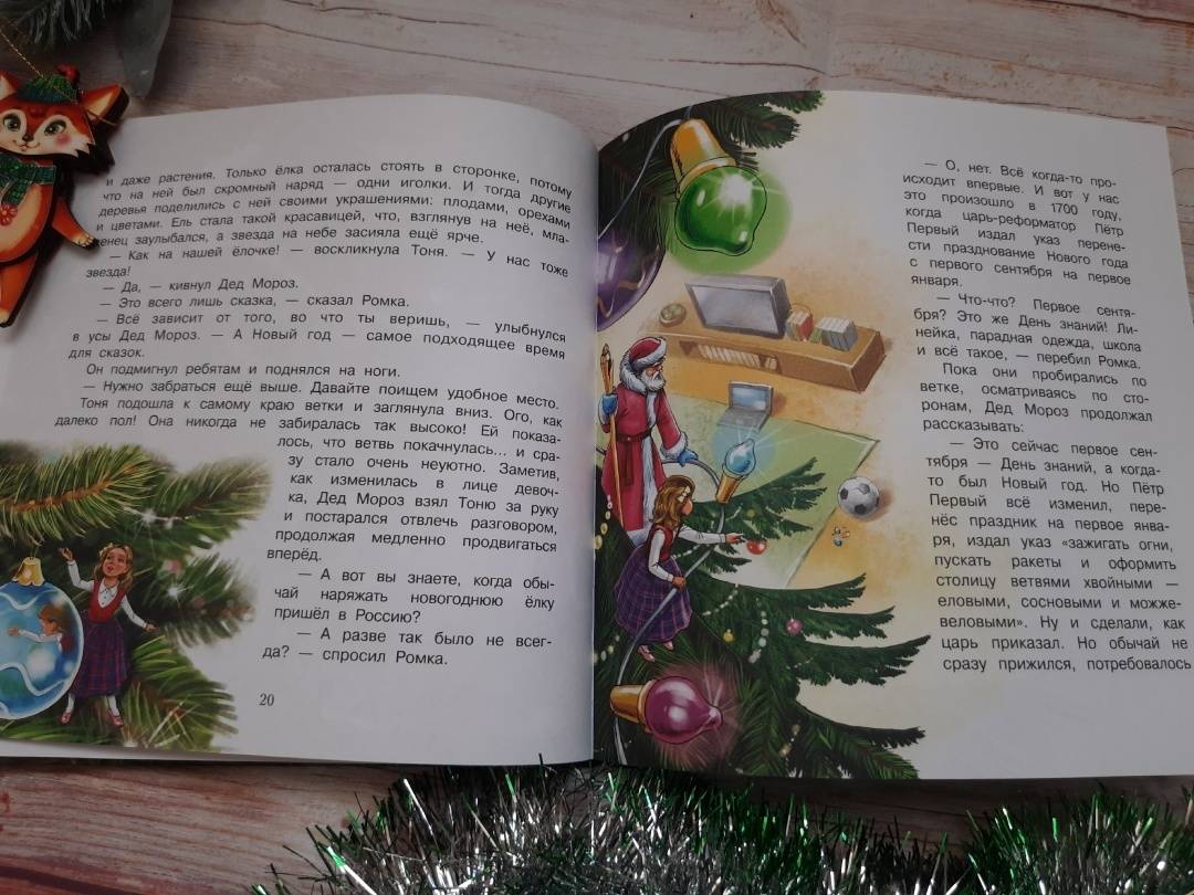 ОписаниеВ новогоднюю ночь происходят самые невероятные чудеса! Тоня и Ромка даже предположить не могли, что перед праздником их ждёт настоящее приключение - путешествие по новогодней ёлке в компании доброго Деда Мороза и знакомство с ёлочными игрушками, каждая из которых расскажет им свою удивительную историю. Ребятам придётся карабкаться вверх по гирлянде, пробираться сквозь заросли серебряного дождика, встретиться с вредной Бабой-ягой и совершить головокружительный полёт вокруг ёлки, чтобы добраться до самой вершины.Вместе с героями читатели узнают много интересного об истории новогодних игрушек, помогут Деду Морозу починить магический посох и спасти Снегурочку до того, как станет слишком поздно!Для детей от 6 лет.В новогоднюю ночь происходят самые невероятные чудеса! Тоня и Ромка даже предположить не могли, что перед праздником их ждёт настоящее приключение - путешествие по новогодней ёлке в компании доброго Деда Мороза и знакомство с ёлочными игрушками, каждая из которых расскажет им свою удивительную историю. Ребятам придётся карабкаться вверх по гирлянде, пробираться сквозь заросли серебряного дождика, встретиться с вредной Бабой-ягой и совершить головокружительный полёт вокруг ёлки, чтобы добраться до самой вершины.Вместе с героями читатели узнают много интересного об истории новогодних игрушек, помогут Деду Морозу починить магический посох и спасти Снегурочку до того, как станет слишком поздно!Для детей от 6 лет.