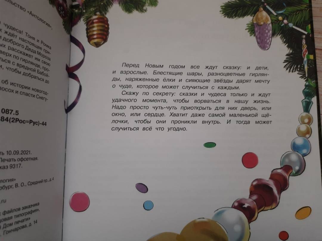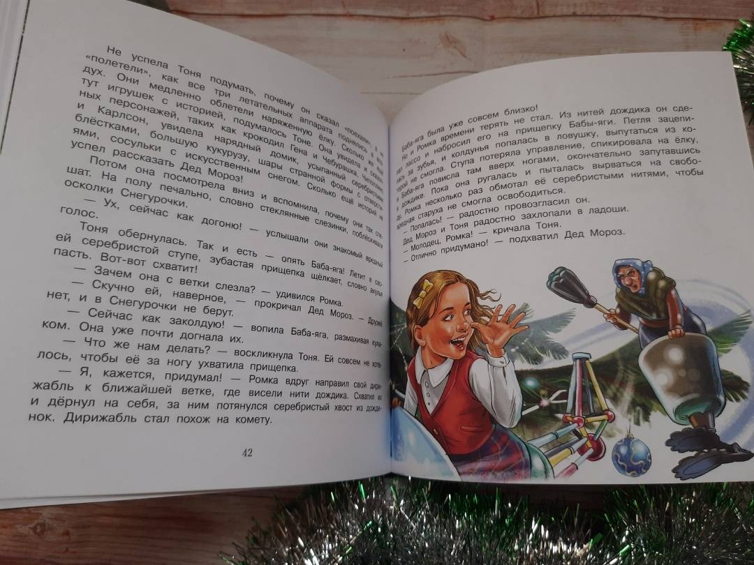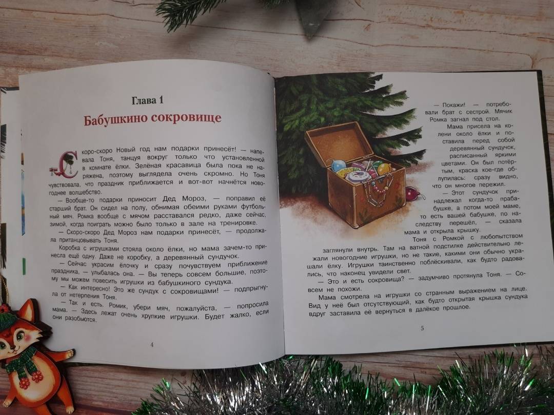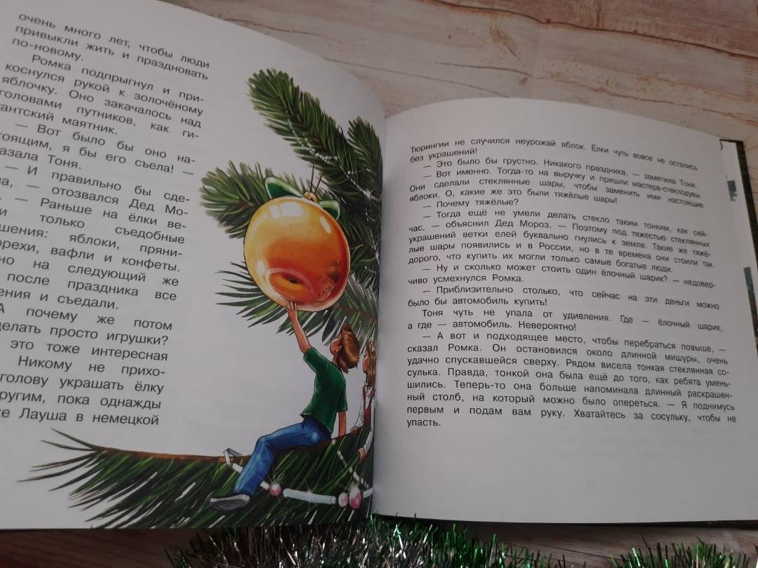 ОписаниеВ новогоднюю ночь происходят самые невероятные чудеса! Тоня и Ромка даже предположить не могли, что перед праздником их ждёт настоящее приключение - путешествие по новогодней ёлке в компании доброго Деда Мороза и знакомство с ёлочными игрушками, каждая из которых расскажет им свою удивительную историю. Ребятам придётся карабкаться вверх по гирлянде, пробираться сквозь заросли серебряного дождика, встретиться с вредной Бабой-ягой и совершить головокружительный полёт вокруг ёлки, чтобы добраться до самой вершины.Вместе с героями читатели узнают много интересного об истории новогодних игрушек, помогут Деду Морозу починить магический посох и спасти Снегурочку до того, как станет слишком поздно!Для детей от 6 лет.В новогоднюю ночь происходят самые невероятные чудеса! Тоня и Ромка даже предположить не могли, что перед праздником их ждёт настоящее приключение - путешествие по новогодней ёлке в компании доброго Деда Мороза и знакомство с ёлочными игрушками, каждая из которых расскажет им свою удивительную историю. Ребятам придётся карабкаться вверх по гирлянде, пробираться сквозь заросли серебряного дождика, встретиться с вредной Бабой-ягой и совершить головокружительный полёт вокруг ёлки, чтобы добраться до самой вершины.Вместе с героями читатели узнают много интересного об истории новогодних игрушек, помогут Деду Морозу починить магический посох и спасти Снегурочку до того, как станет слишком поздно!Для детей от 6 лет.