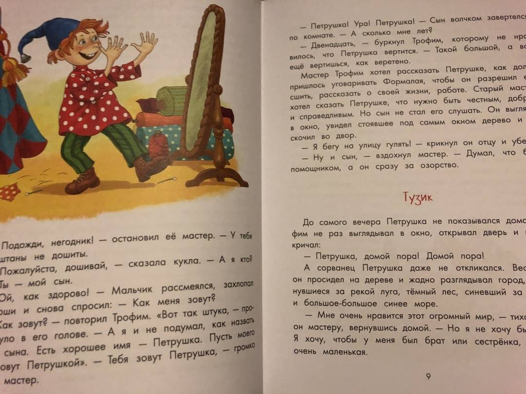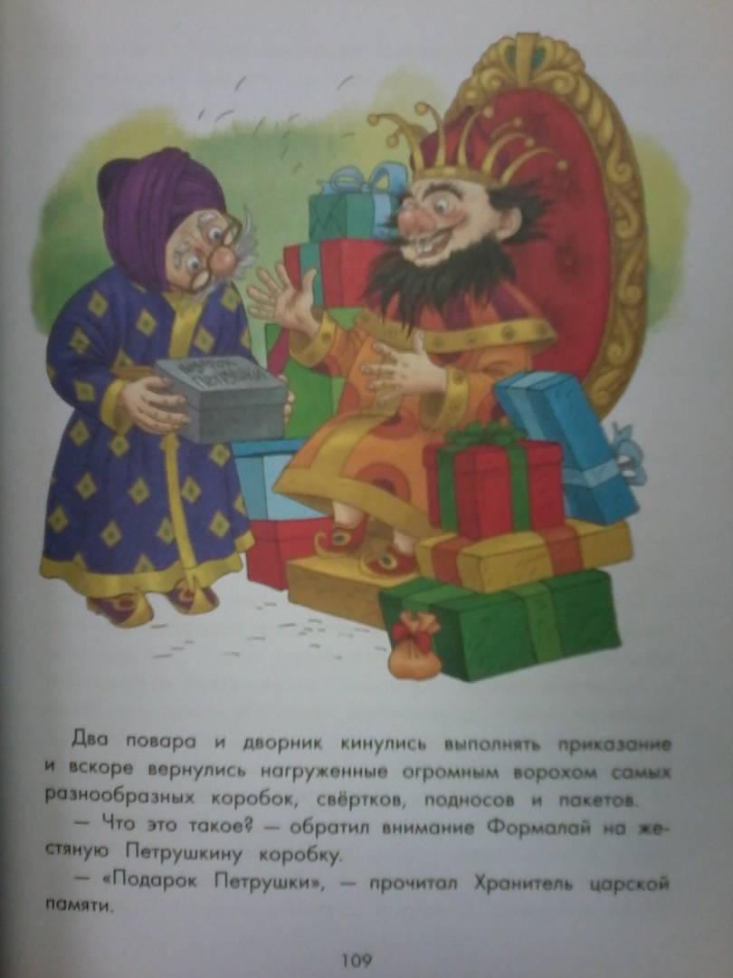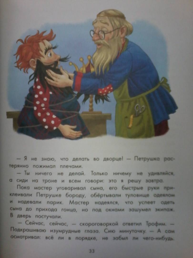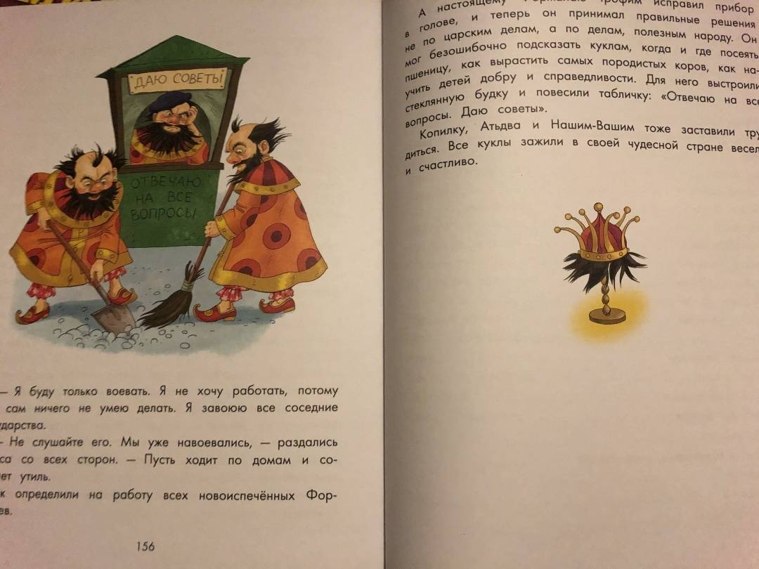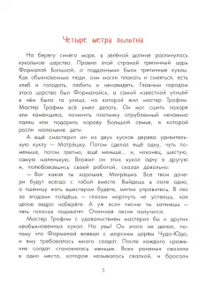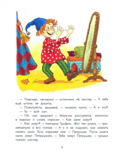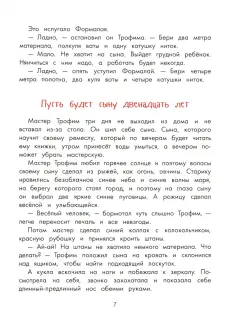 ОписаниеВ кукольном царстве дружно живут тряпичные куклы: добрая Матрешка и пять её маленьких дочек, кузнец Игнат, мастер Трофим и рукодельница Алёнка. Только Формалай, правитель страны, не хочет жить в мире и дружбе - ему бы всё время воевать! Вот и заставляет он мастера Трофима постоянно шить ему солдат для сражений с морским царём Чудом-Юдом...Много бед натворил бы Формалай, если бы не сын мастера Трофима - Петрушка. Этот озорник и шутник совсем не готов мириться с несправедливостью. Ох и достанется же от него зловредному царю Формалаю, глупому генералу Атьдва и подлому судье Нашим-Вашим! Петрушка избавит тряпичных кукол от злых правителей и спасёт маленькую Алёнку от Чуда-Юда. А заодно этот неунывающий проказник заставит всех посмеяться над своими проделками и шутками.Для детей младшего школьного возраста.В кукольном царстве дружно живут тряпичные куклы: добрая Матрешка и пять её маленьких дочек, кузнец Игнат, мастер Трофим и рукодельница Алёнка. Только Формалай, правитель страны, не хочет жить в мире и дружбе - ему бы всё время воевать! Вот и заставляет он мастера Трофима постоянно шить ему солдат для сражений с морским царём Чудом-Юдом...Много бед натворил бы Формалай, если бы не сын мастера Трофима - Петрушка. Этот озорник и шутник совсем не готов мириться с несправедливостью. Ох и достанется же от него зловредному царю Формалаю, глупому генералу Атьдва и подлому судье Нашим-Вашим! Петрушка избавит тряпичных кукол от злых правителей и спасёт маленькую Алёнку от Чуда-Юда. А заодно этот неунывающий проказник заставит всех посмеяться над своими проделками и шутками.Для детей младшего школьного возраста.