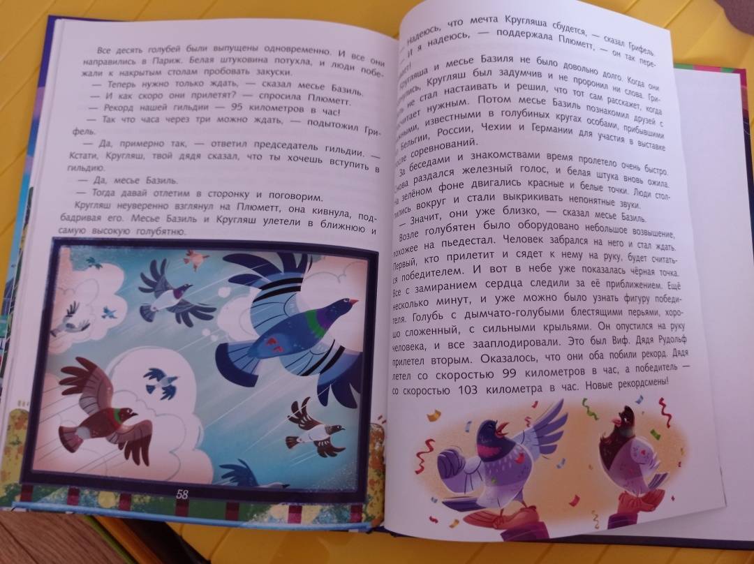 ОписаниеА что, если взять и отправиться вслед за своей мечтой? Ведь для такого путешествия необязательно быть самым храбрым в мире, достаточно просто верить в счастливую звезду! Кстати, не только люди умеют мечтать, голуби тоже. Именно поэтому обычный сизый голубь по имени Кругляш направляется в Париж. Его мечта - попасть в Золотую гильдию скоролётных голубей. Вместе с ним летит и его друг Грифель, чтобы поддержать товарища в столь важном решении. Героев ждут новые знакомства и невероятные приключения. Им откроются тайны прошлого и представится возможность выбрать своё будущее!А что, если взять и отправиться вслед за своей мечтой? Ведь для такого путешествия необязательно быть самым храбрым в мире, достаточно просто верить в счастливую звезду! Кстати, не только люди умеют мечтать, голуби тоже. Именно поэтому обычный сизый голубь по имени Кругляш направляется в Париж. Его мечта - попасть в Золотую гильдию скоролётных голубей. Вместе с ним летит и его друг Грифель, чтобы поддержать товарища в столь важном решении. Героев ждут новые знакомства и невероятные приключения. Им откроются тайны прошлого и представится возможность выбрать своё будущее!