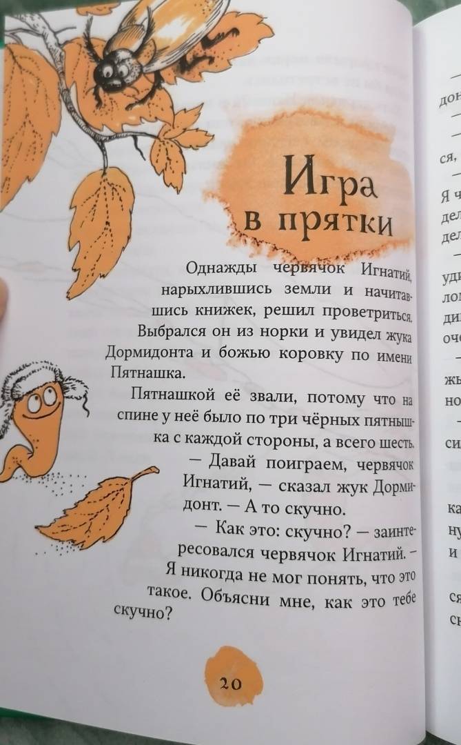 ОписаниеДобрый, милый и умный червячок Игнатий! Ему удается выходить победителем из любых ситуаций. У него замечательные друзья с очень разными характерами: жук Дормидонт, божья коровка Пятнашка, паук Пафнутий и другие. Их приключения помогают ощутить, что внутренняя сила важнее внешней, что душевные качества могут помочь нам в любых обстоятельствах.Это сказки для детей и вместе с тем – важное педагогическое подспорье для взрослых.Добрый, милый и умный червячок Игнатий! Ему удается выходить победителем из любых ситуаций. У него замечательные друзья с очень разными характерами: жук Дормидонт, божья коровка Пятнашка, паук Пафнутий и другие. Их приключения помогают ощутить, что внутренняя сила важнее внешней, что душевные качества могут помочь нам в любых обстоятельствах.Это сказки для детей и вместе с тем – важное педагогическое подспорье для взрослых.