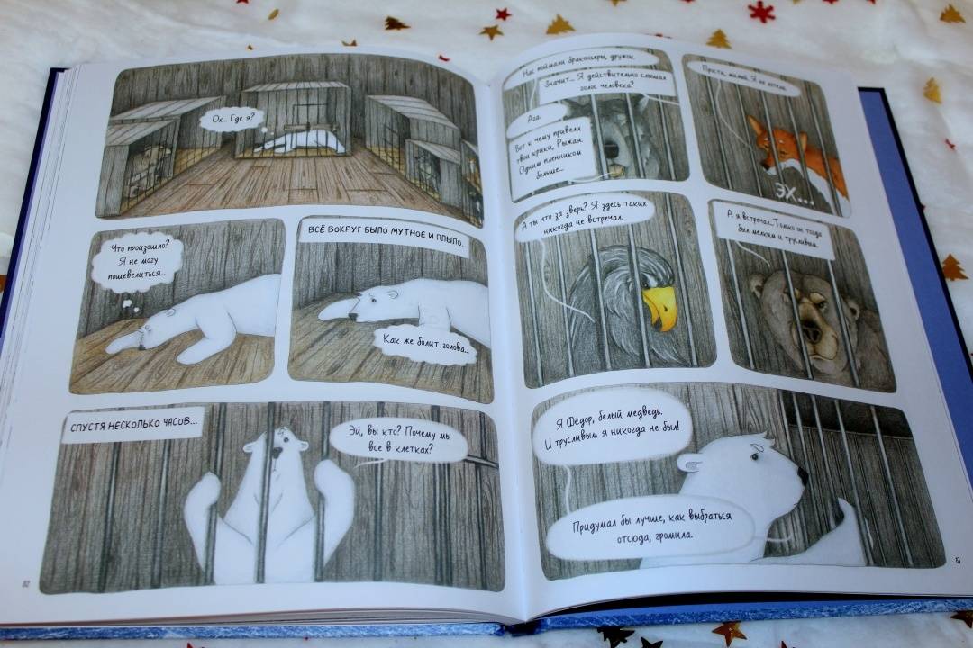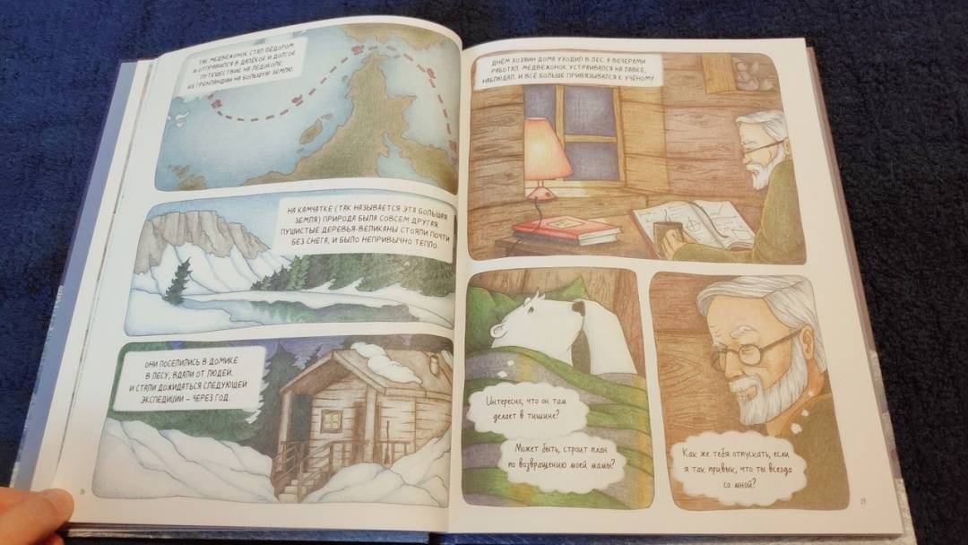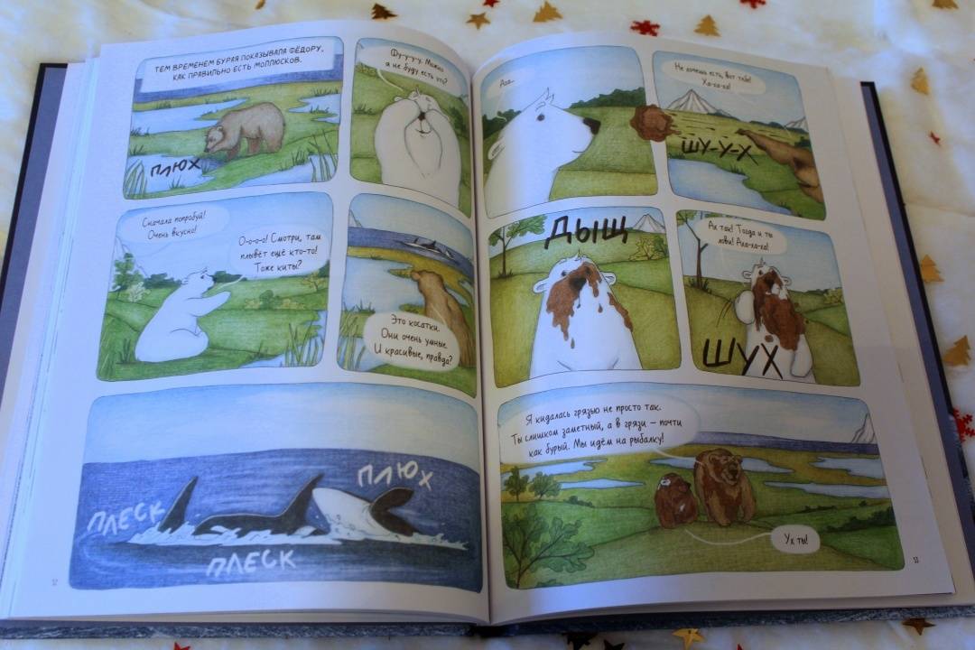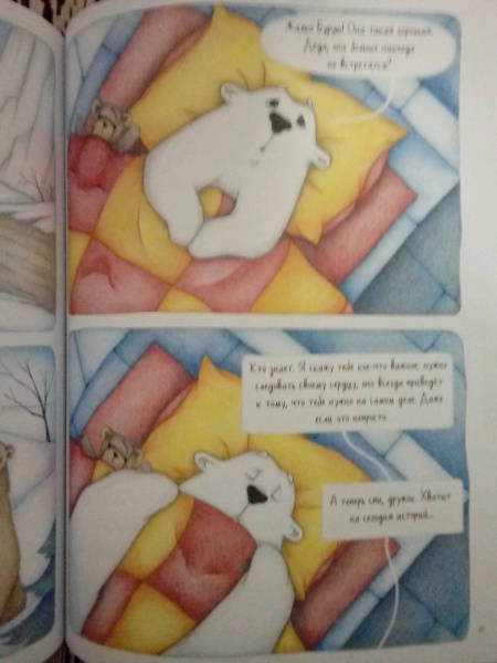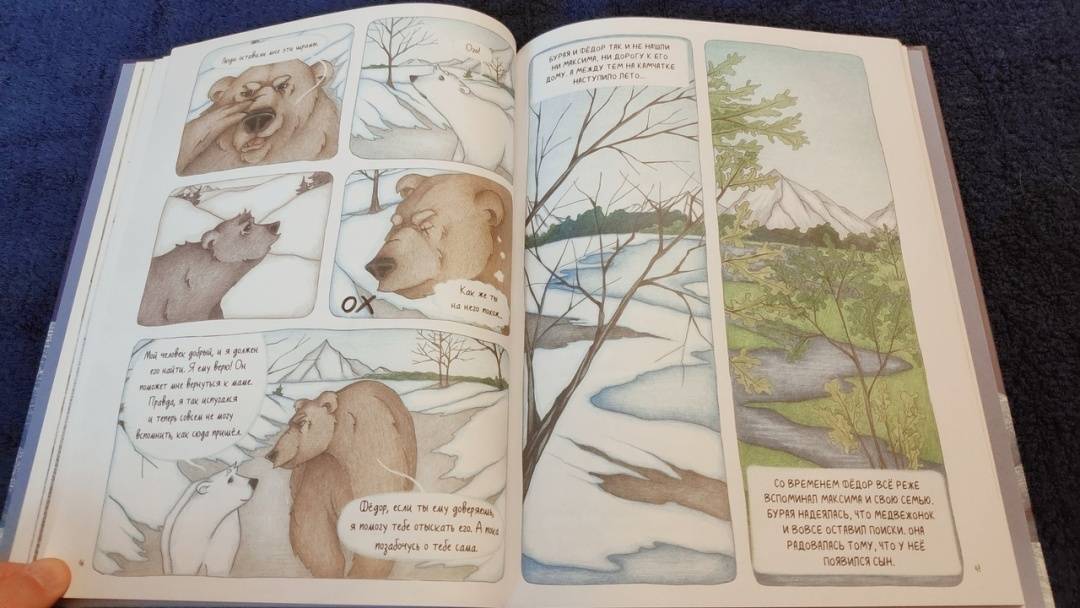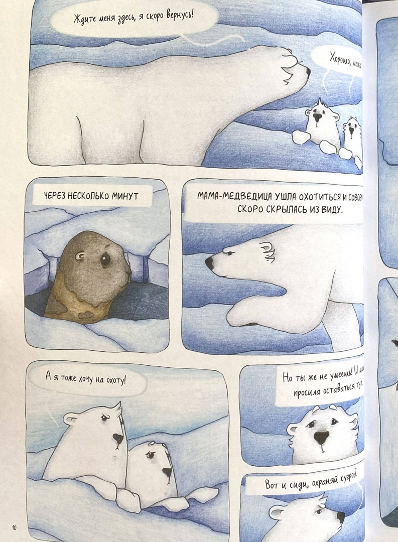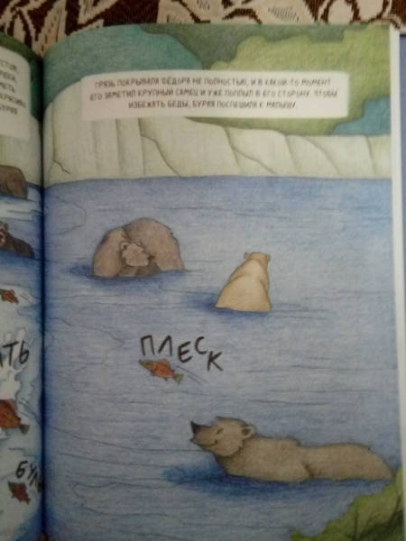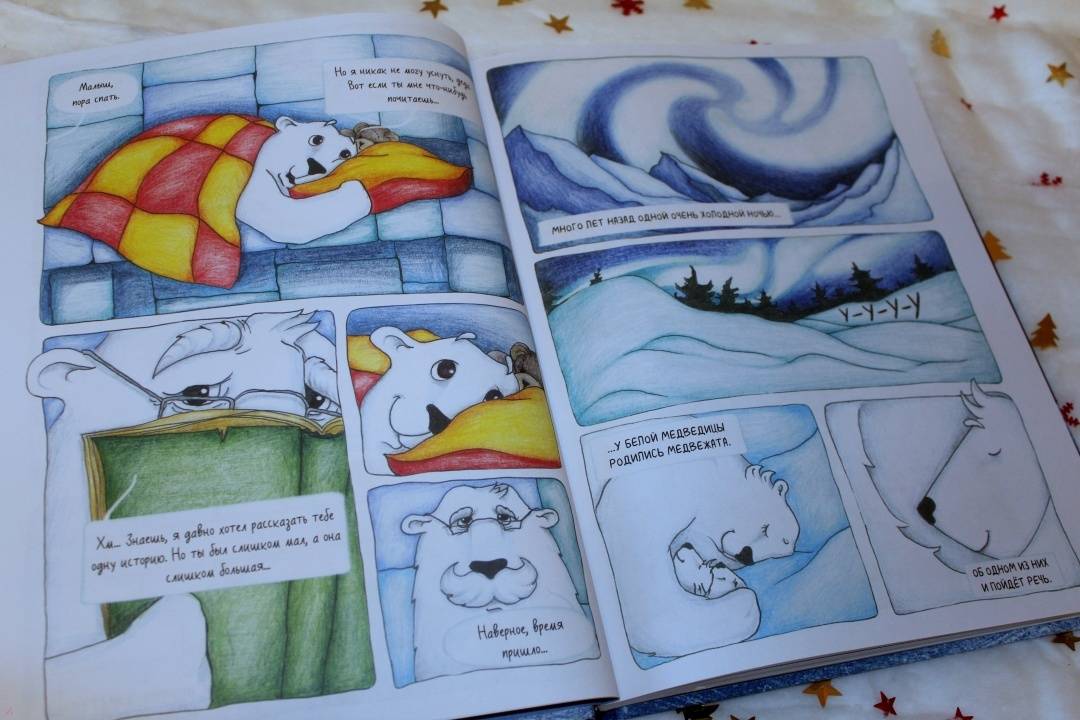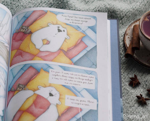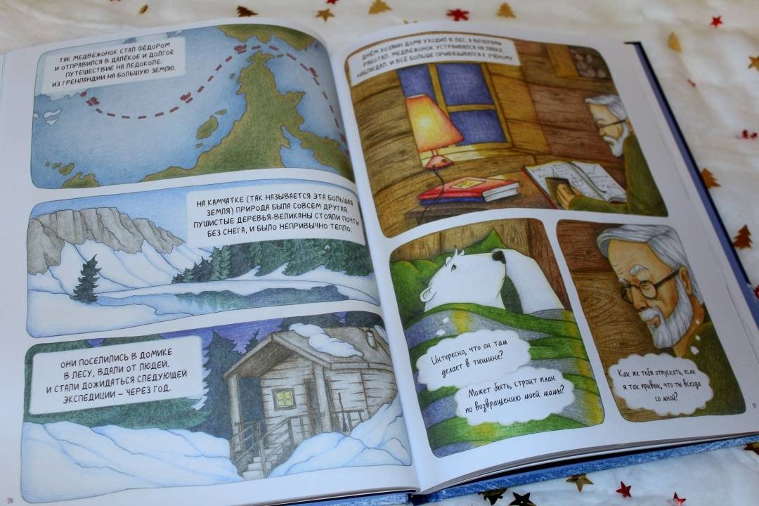 Описание"Медвежонок Фёдор" - это тёплая зимняя сказка о дружбе, отваге и самостоятельности.Фёдор - маленький непоседливый медвежонок, очень любопытный и любознательный. Всё ему нужно проверить и попробовать самому! Однажды с крохой случилась беда - он потерялся... и остался совсем один среди бескрайней Арктики. Как теперь отыскать дорогу домой? Неужели он больше никогда не увидит маму и сестрёнку?Хорошо, что мимо проплывал ледокол, и ученый по имени Максим заметил медвежонка. Может быть, этот человек поможет Федору вернуться домой, к семье?..Так и началась эта удивительная история о дружбе человека и белого медведя...Фишки книги- История поделена на три части, чтобы было удобно читать книгу перед сном- В книге много звукоподражательных междометий для развития речи- Иллюстрации в книге живые: автор специально рисовала все картинки от руки цветными карандашамиОт автораВсё началось в 2017 году... В тот момент я работала над детективной серией "Розовый слон" в качестве художника. Именно тогда мне жутко захотелось попробовать себя в роли сценариста.Идея родилась очень быстро - я с детства обожаю белых медведей, вот и решила для начала нарисовать простенькие стрипы про милого белого медвежонка. В процессе работы я поняла, что мне не хватает масштаба, что мне хочется рассказать гораздо больше, а для этого был нужен текст...В эту книгу я вложила очень много тепла и своей души. Каждую иллюстрацию я рисовала от руки цветными карандашами, поэтому они получились, на мой взгляд, очень живыми и уютными (знали бы вы, сколько раз я перерисовывала их :))Надеюсь, эта история будет согревать и детей, и взрослых!Большое спасибо Лилии Ш. за поддержку и помощь в создании истории и команде издательства, благодаря которой книга вышла в лучшем виде!Для кого эта книгаДля детей от 4 лет (совместное чтение с родителями)Для всех, кто любит душевные истории и уютные иллюстрацииДля детей, начинающих читать самостоятельноСвернуть"Медвежонок Фёдор" - это тёплая зимняя сказка о дружбе, отваге и самостоятельности.Фёдор - маленький непоседливый медвежонок, очень любопытный и любознательный. Всё ему нужно проверить и попробовать самому! Однажды с крохой случилась беда - он потерялся... и остался совсем один среди бескрайней Арктики. Как теперь отыскать дорогу домой? Неужели он больше никогда не увидит маму и сестрёнку?Хорошо, что мимо проплывал ледокол, и ученый по имени Максим заметил медвежонка. Может быть, этот человек поможет Федору вернуться домой, к семье?..Так и началась эта удивительная история о дружбе человека и белого медведя...Фишки книги- История поделена на три части, чтобы было удобно читать книгу перед сном- В книге много звукоподражательных междометий для развития речи- Иллюстрации в книге живые: автор специально рисовала все картинки от руки цветными карандашамиОт автораВсё началось в 2017 году... В тот момент я работала над детективной серией "Розовый слон" в качестве художника. Именно тогда мне жутко захотелось попробовать себя в роли сценариста.Идея родилась очень быстро - я с детства обожаю белых медведей, вот и решила для начала нарисовать простенькие стрипы про милого белого медвежонка. В процессе работы я поняла, что мне не хватает масштаба, что мне хочется рассказать гораздо больше, а для этого был нужен текст...В эту книгу я вложила очень много тепла и 