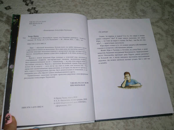 ОписаниеВ издательстве "НИГМА" выходит повесть-сказка для детей 7-12 лет ""Путешествие в Волшебную страну, или Рождение единорога". Это фэнтезийная история, в которой переплетаются наш мир и мир эльфов, единорогов и других сказочных существ.Автор книги много лет живет в Таллине. В 90-х годах она увлеклась изучением восточных философий, а так же мифов, эпосов и сказаний народов России. Мистическая атмосфера древнего города вдохновила Ирину Талер на создание этой истории: "Средневековый Таллин сам по себе является прекрасной декорацией, а если ты смотришь на городские стены через призму сказаний, в твоей голове начинают рождаться удивительные истории, - говорит Ирина. - Со временем мне захотелось написать книгу для детей, где герои древних эпосов станут равноправными участниками современных персонажей. Так появилась история Юри и его друзей". Юри - обычный мальчишка, больше всего он любит проводить время с друзьями и гонять на велосипеде. Но в один день всё внезапно меняется - мальчик покупает искусную поделку у загадочного мастера, которая оказывается… волшебным живым существом эльфидой, и ей очень нужна его помощь.Вместе с новой знакомой Юри попадает в чудесный мир, населённый утончёнными эльфами, мастеровитыми гномами, малышками-эльфидами и хранительницами лесов - помпилами, - но над этим миром нависла настоящая опасность. Вместе с жителями волшебной страны Юри решает встать на её защиту - хоть он не так смел и силён, как хотелось бы… Ему предстоят захватывающие приключения, в которых он научится преодолевать страх и поддерживать других, быть решительным и отважным, и неожиданно для себя обретёт самого необыкновенного друга.Удивительная сказочная история проиллюстрирована атмосферными рисунками Александры Лиукконен.Об авторе:Ирина Талер родилась на Северном Кавказе в городе Минеральные Воды. Позднее с семьёй переехала в Эстонию, где живёт сейчас. Работала в городской газете.Об иллюстраторе:Александра Лиукконен - художник-иллюстратор из Санкт-Петербурга. Иллюстрирует произведения детской и юношеской художественной литературы. Сотрудничала с российскими издательствами "Нигма", "Качели", "АСТ". Иллюстрации, созданные Александрой для книги "Поллианна", вошли в полуфинал конкурса "Новая детская книга" в 2020 году.Для детей младшего школьного возраста.СвернутьВ издательстве "НИГМА" выходит повесть-сказка для детей 7-12 лет ""Путешествие в Волшебную страну, или Рождение единорога". Это фэнтезийная история, в которой переплетаются наш мир и мир эльфов, единорогов и других сказочных существ.Автор книги много лет живет в Таллине. В 90-х годах она увлеклась изучением восточных философий, а так же мифов, эпосов и сказаний народов России. Мистическая атмосфера древнего города вдохновила Ирину Талер на создание этой истории: "Средневековый Таллин сам по себе является прекрасной декорацией, а если ты смотришь на городские стены через призму сказаний, в твоей голове начинают рождаться удивительные истории, - говорит Ирина. - Со временем мне захотелось написать книгу для детей, где герои древних эпосов станут равноправными участниками современных персонажей. Так появилась история Юри и его друзей". Юри - обычный мальчишка, больше всего он любит проводить время с друзьями и гонять на велосипеде. Но в один день всё внезапно меняется - мальчик п