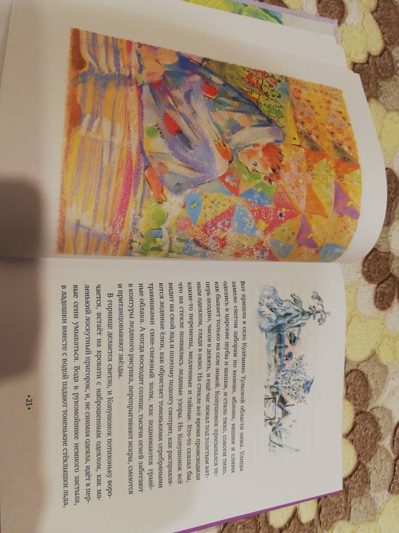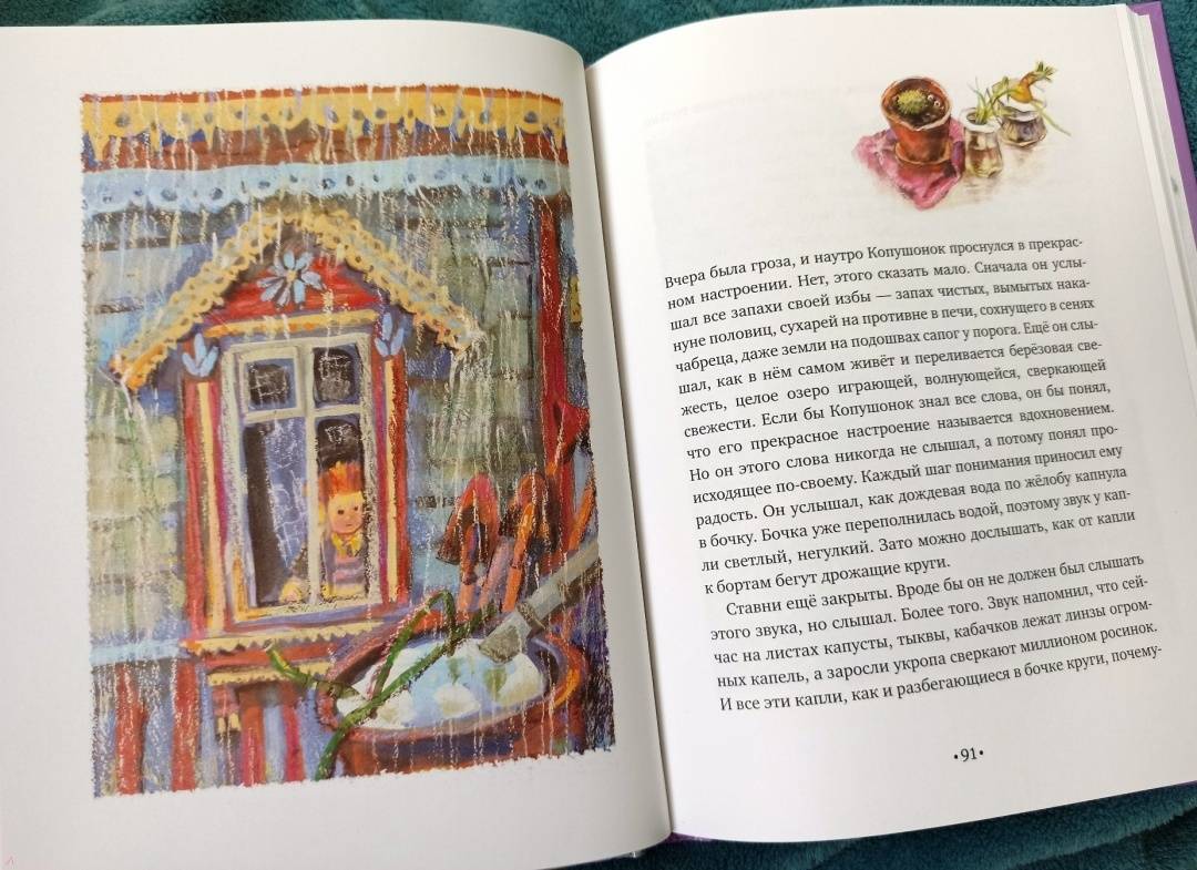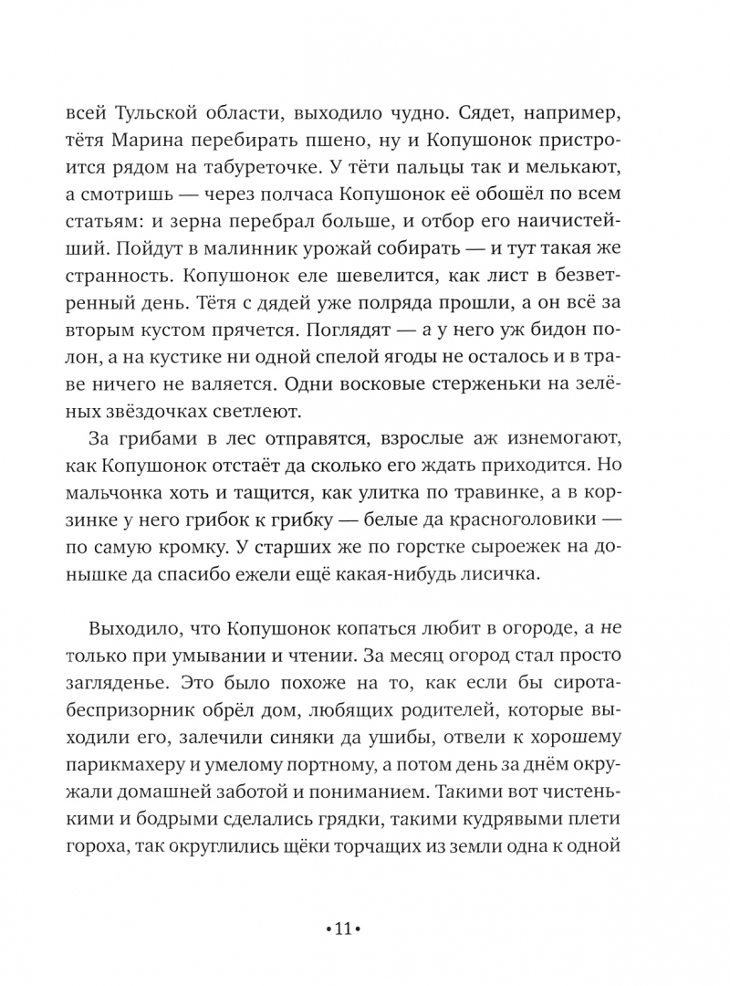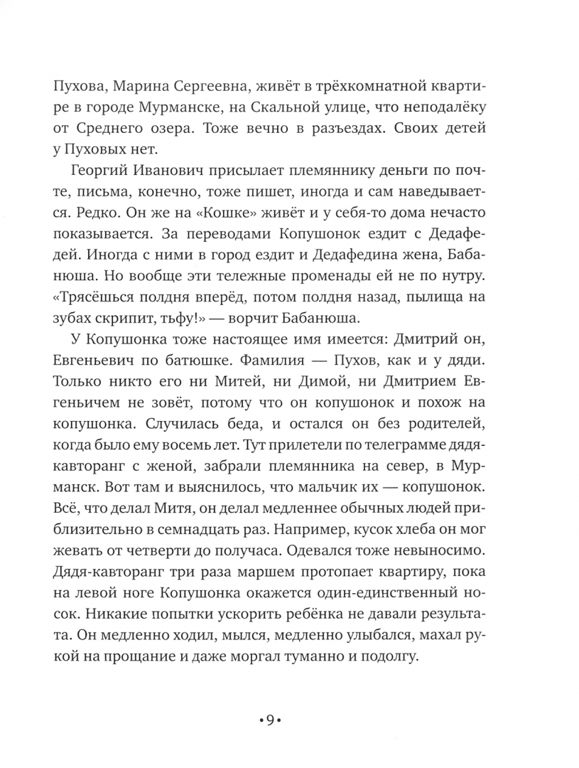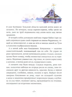 ОписаниеСказки о Копушонке вводят читателя в согревающий, добродушный мир, в котором хочется побыть побольше. Здесь зимние узоры на стекле предсказывают будущее, в лукошке с ягодами кто-то оставляет тайные послания и можно поплавать на настоящей лодке, не выходя из настоящего самолета. Здесь сказочна сама жизнь, где взрослым горожанам не угнаться за ребенком, которого все считают заторможенным. На удивительные вызовы герой отвечает по-своему и успевает именно потому, что не спешит. Отныне слово "копушонок" может украсить словарь детей и взрослых, а приключения героев разбудят не только воображение, но и размышления о самых важных предметах.Сказки о Копушонке вводят читателя в согревающий, добродушный мир, в котором хочется побыть побольше. Здесь зимние узоры на стекле предсказывают будущее, в лукошке с ягодами кто-то оставляет тайные послания и можно поплавать на настоящей лодке, не выходя из настоящего самолета. Здесь сказочна сама жизнь, где взрослым горожанам не угнаться за ребенком, которого все считают заторможенным. На удивительные вызовы герой отвечает по-своему и успевает именно потому, что не спешит. Отныне слово "копушонок" может украсить словарь детей и взрослых, а приключения героев разбудят не только воображение, но и размышления о самых важных предметах.