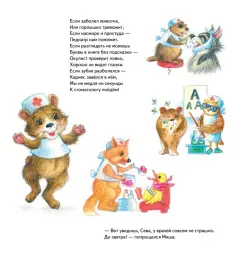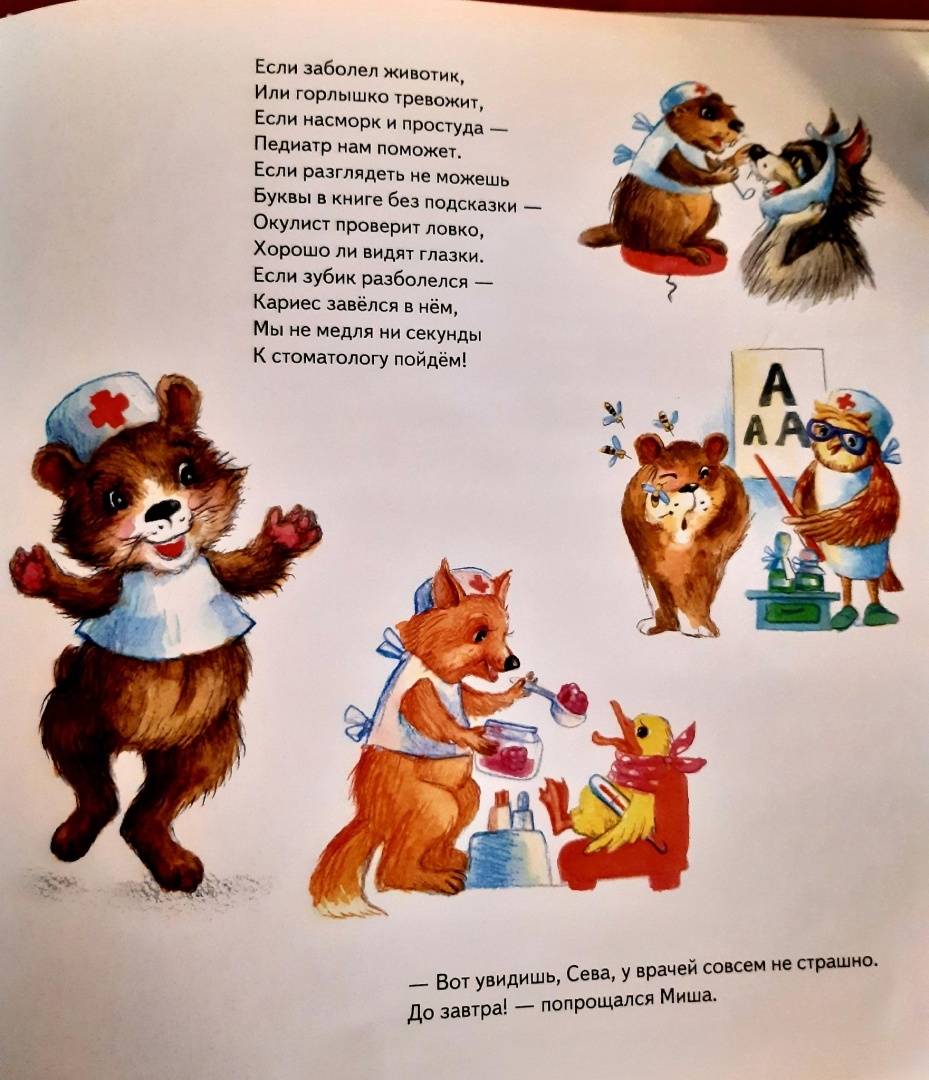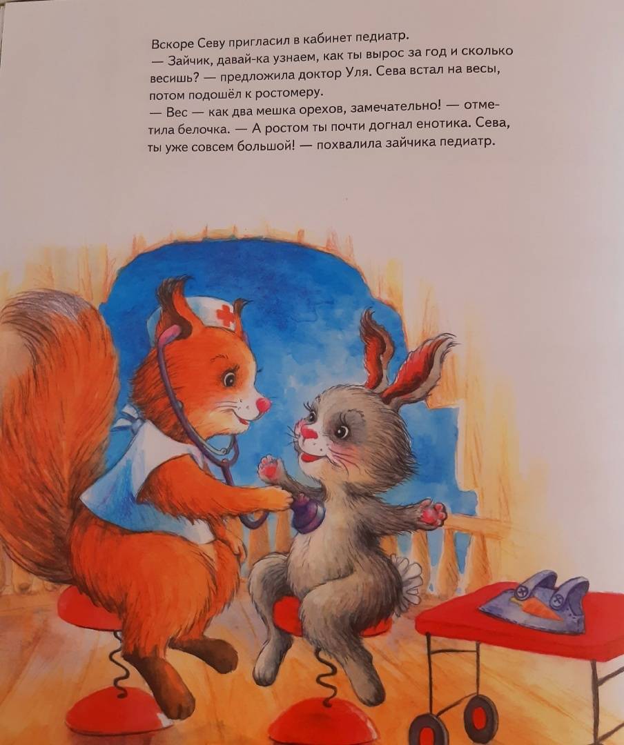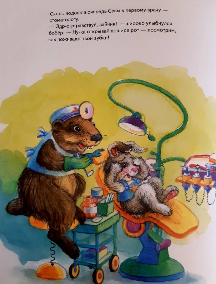 ОписаниеВ детском саду воспитательница Зая Петровна объявила, что всем зверятам нужно пройти осмотр врачей в поликлинике: малышей ждут стоматолог, окулист и педиатр. Ох, зайчик Сева не на шутку испугался... А что случилось дальше, вы узнаете из сказки, поучительной и полезной.Это не просто великолепно иллюстрированные истории про непоседливого зайку и его друзей для семейного чтения, но и материал для беседы "Что такое хорошо и что такое плохо".В конце книги предлагаются вопросы, составленные детским педагогом-психологом для обсуждения с ребёнком. Книга рекомендована родителям, воспитателям, педагогам.Полезные сказки воспитывают ребёнка без крика и наказаний!Для чтения взрослыми детям.В детском саду воспитательница Зая Петровна объявила, что всем зверятам нужно пройти осмотр врачей в поликлинике: малышей ждут стоматолог, окулист и педиатр. Ох, зайчик Сева не на шутку испугался... А что случилось дальше, вы узнаете из сказки, поучительной и полезной.Это не просто великолепно иллюстрированные истории про непоседливого зайку и его друзей для семейного чтения, но и материал для беседы "Что такое хорошо и что такое плохо".В конце книги предлагаются вопросы, составленные детским педагогом-психологом для обсуждения с ребёнком. Книга рекомендована родителям, воспитателям, педагогам.Полезные сказки воспитывают ребёнка без крика и наказаний!Для чтения взрослыми детям.