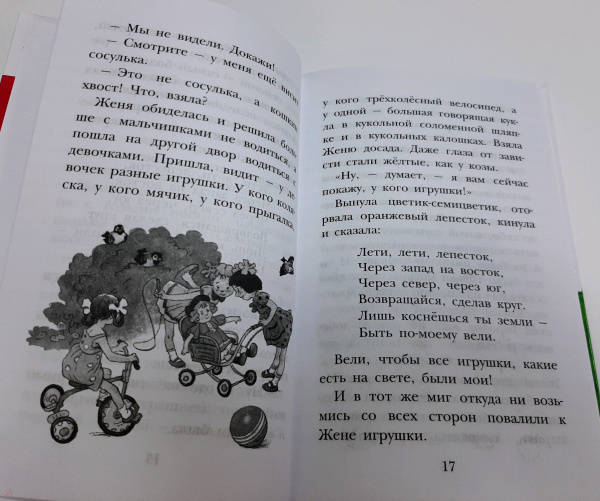 ОписаниеГерои этой книги — обычные мальчишки и девчонки, с которыми случаются сказочные происшествия: вот волшебный цветик-семицветик, исполняющий желания, попал в руки девочки, а вот Петя оказался по другую сторону экрана и очутился в мультфильме про Красную Шапочку. Эти и много других сказок, вошедших в эту книгу, придумали писатели В. Катаев, В. Сутеев, Г. Цыферов, Е. Шварц, В. Осеева и другие. В каждую сказку авторы привнесли мудрые поучения: не забывай делать добро, созерцать красоту вокруг и быть хорошим человеком.Иллюстрации Ю. Молоканова, А. Савченко, Г. Соколова и других.Для младшего школьного возраста.Герои этой книги — обычные мальчишки и девчонки, с которыми случаются сказочные происшествия: вот волшебный цветик-семицветик, исполняющий желания, попал в руки девочки, а вот Петя оказался по другую сторону экрана и очутился в мультфильме про Красную Шапочку. Эти и много других сказок, вошедших в эту книгу, придумали писатели В. Катаев, В. Сутеев, Г. Цыферов, Е. Шварц, В. Осеева и другие. В каждую сказку авторы привнесли мудрые поучения: не забывай делать добро, созерцать красоту вокруг и быть хорошим человеком.Иллюстрации Ю. Молоканова, А. Савченко, Г. Соколова и других.Для младшего школьного возраста.