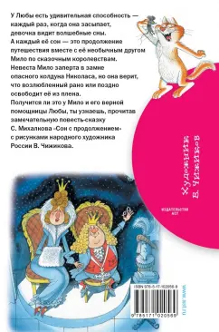 ОписаниеПовесть-сказка С. Михалкова "Сон с продолжением" - удивительная история путешествий главной героини Любы по сказочным королевствам вместе с её другом по имени Мило. Вместе они должны спасти от гибели целое государство под названием Джоконда и возлюбленную Мило - балерину Парлипа. Смелость, настойчивость и помощь преданных друзей - вот что поможет одержать победу над злом, охватившим Джоконду. Произведение подходит для внеклассного чтения в начальной школе.Для младшего школьного возраста.Повесть-сказка С. Михалкова "Сон с продолжением" - удивительная история путешествий главной героини Любы по сказочным королевствам вместе с её другом по имени Мило. Вместе они должны спасти от гибели целое государство под названием Джоконда и возлюбленную Мило - балерину Парлипа. Смелость, настойчивость и помощь преданных друзей - вот что поможет одержать победу над злом, охватившим Джоконду. Произведение подходит для внеклассного чтения в начальной школе.Для младшего школьного возраста.