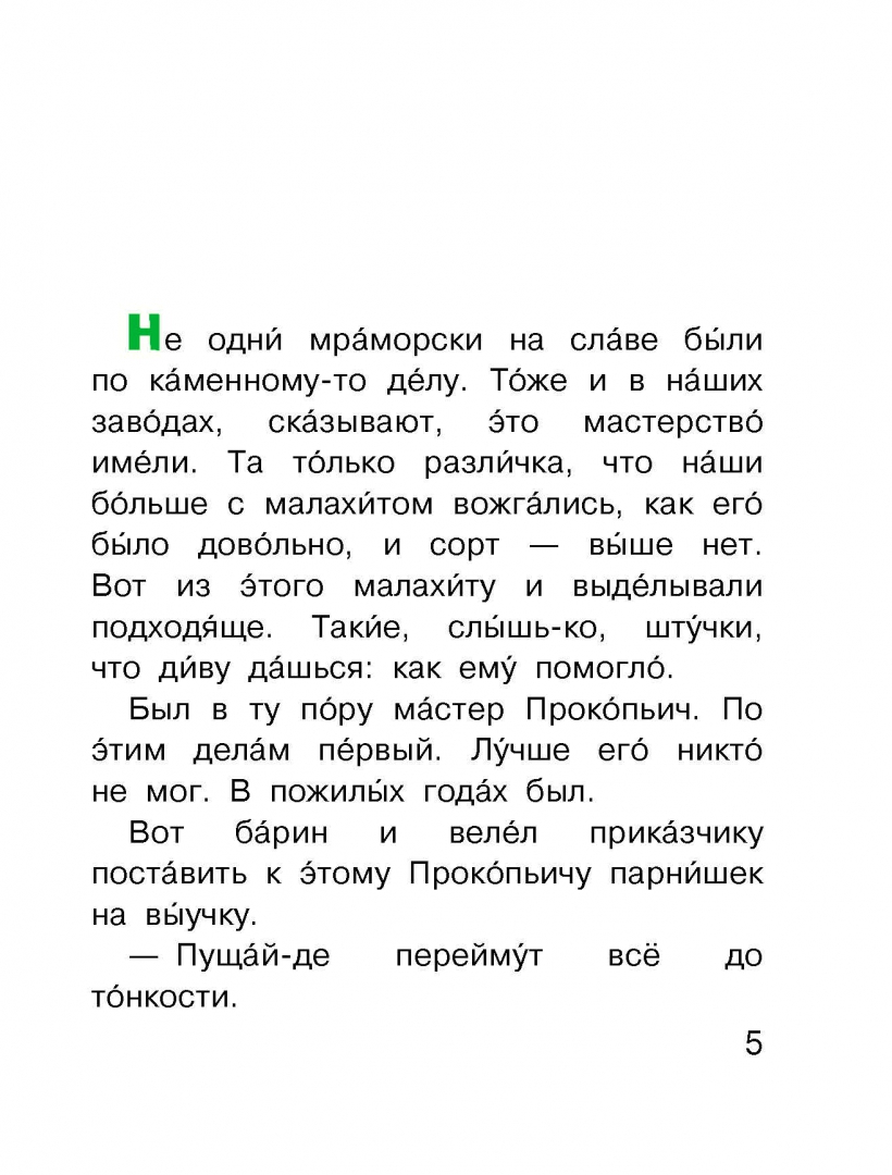 Невозможно представить по-настоящему культурного человека, который с детства не проникся неповторимым и чарующим миром сказов Павла Петровича Бажова! В этой книге дети познакомятся с талантливым Данилой-мастером и загадочной Хозяйкой Медной горы, смогут восхититься суровой и прекрасной природой Урала, неповторимой культурой русского народа. Сказ учит смелости и отваге, вере в свою мечту, пробуждает стремление к творчеству. Все слова в тексте даны с ударениями, чтобы помочь маленьким читателям самостоятельно познакомиться с одним из самых увлекательных сказов писателя.Для дошкольного возраста.Серия «Читаем сами без мамы» — это книги для читателей, а не слушателей!