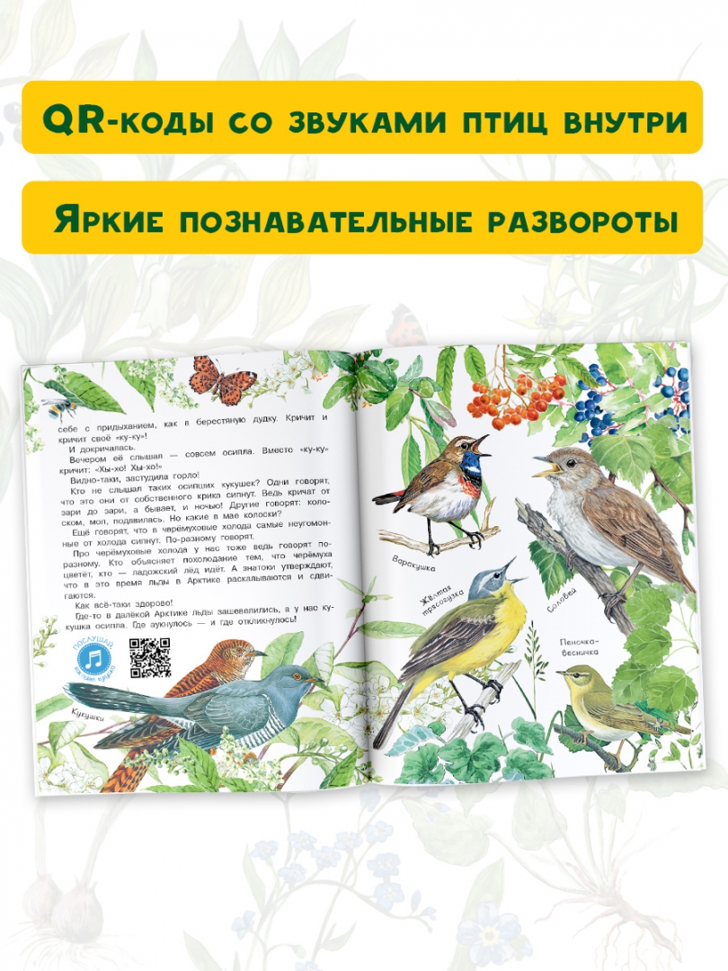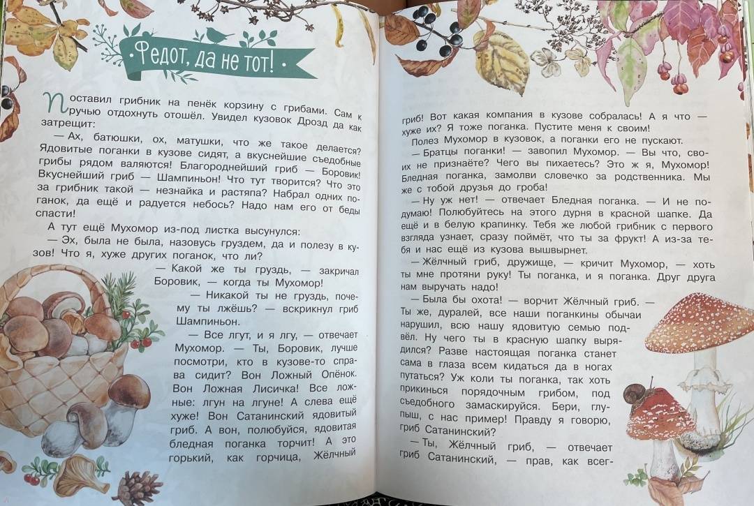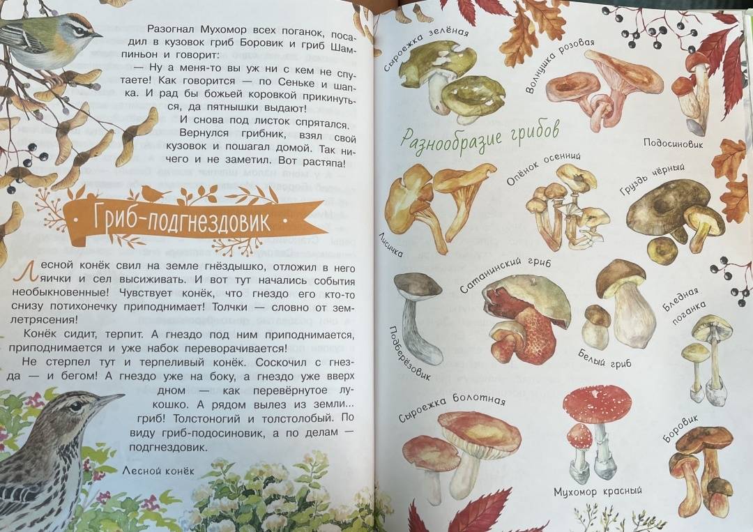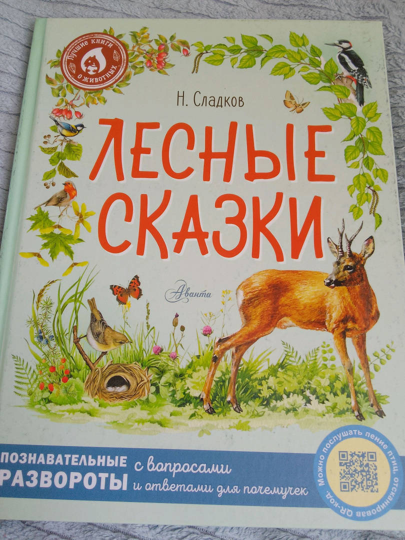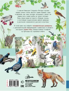 ОписаниеВесёлые и познавательные сказки Николая Сладкова знакомят читателей с обитателями леса: трудолюбивым дятлом, хитрой белкой, трусоватым медведем, который сам себя напугал, даже с вредным грибом Мухомором, который пытался пролезть в корзинку грибника. Сказки дополняют акварельные иллюстрации современных художников и познавательные развороты с интересной информацией о животных, сделанные специально для детей. А если навести телефон на QR-коды на страницах книги, можно услышать пение лесных птиц.Для младшего школьного возраста.Весёлые и познавательные сказки Николая Сладкова знакомят читателей с обитателями леса: трудолюбивым дятлом, хитрой белкой, трусоватым медведем, который сам себя напугал, даже с вредным грибом Мухомором, который пытался пролезть в корзинку грибника. Сказки дополняют акварельные иллюстрации современных художников и познавательные развороты с интересной информацией о животных, сделанные специально для детей. А если навести телефон на QR-коды на страницах книги, можно услышать пение лесных птиц.Для младшего школьного возраста.