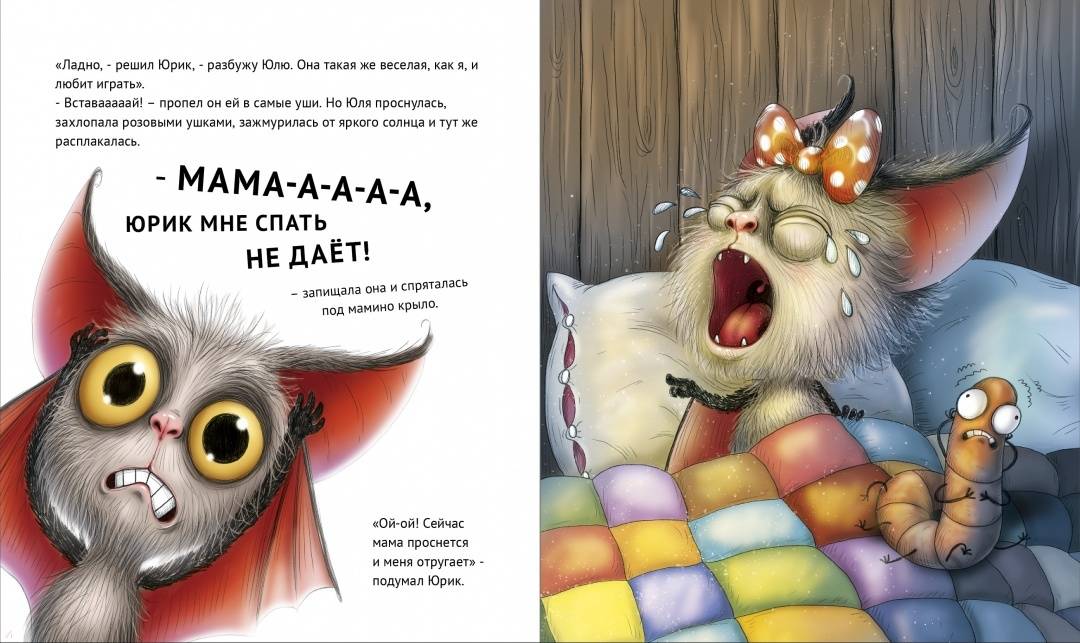 ОписаниеЛетучий мышонок Юрик - большой озорник! Он очень переживает, что плохо себя ведёт и мама любит его не так сильно, как остальных братьев и сестёр... Но так ли это? История, написанная с юмором и большой теплотой, идеально подходит для первого чтения с ребёнком.Летучий мышонок Юрик - большой озорник! Он очень переживает, что плохо себя ведёт и мама любит его не так сильно, как остальных братьев и сестёр... Но так ли это? История, написанная с юмором и большой теплотой, идеально подходит для первого чтения с ребёнком.