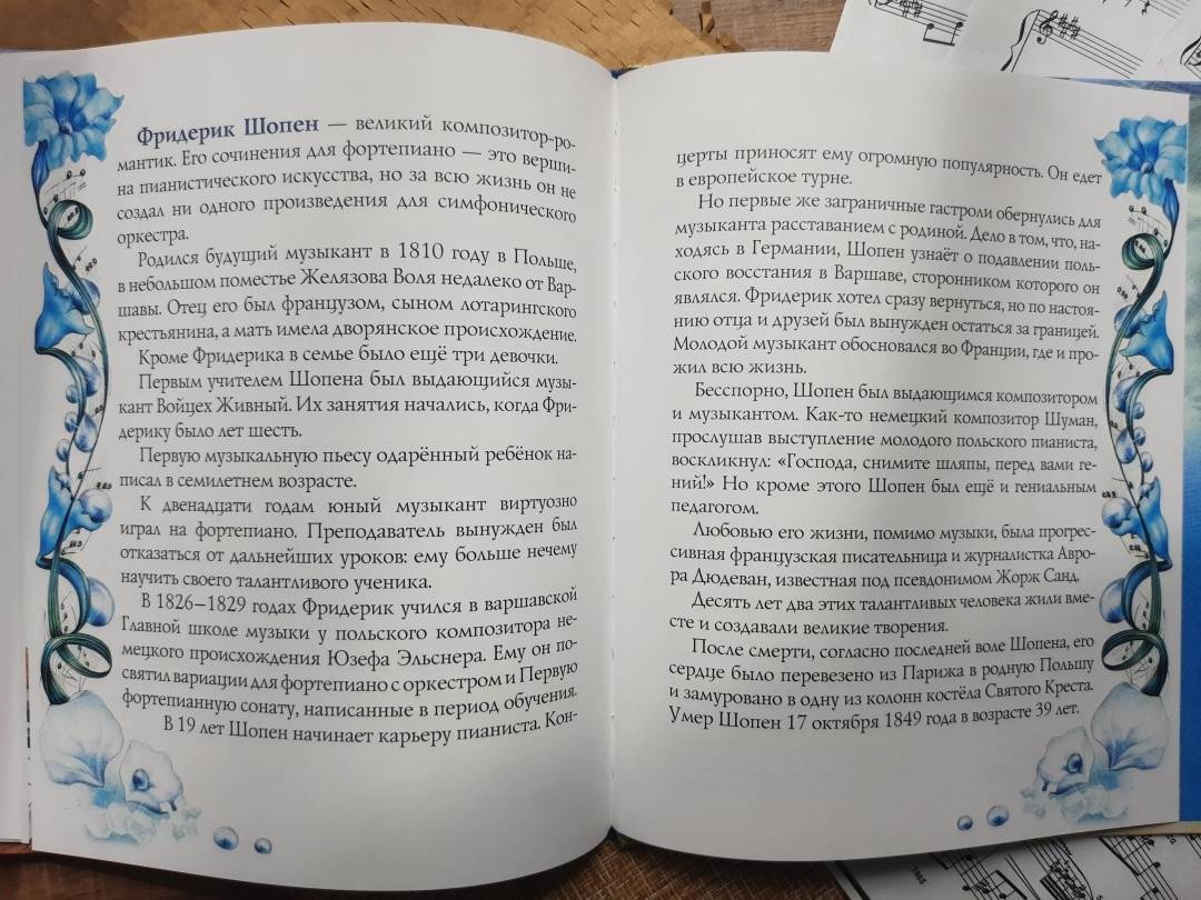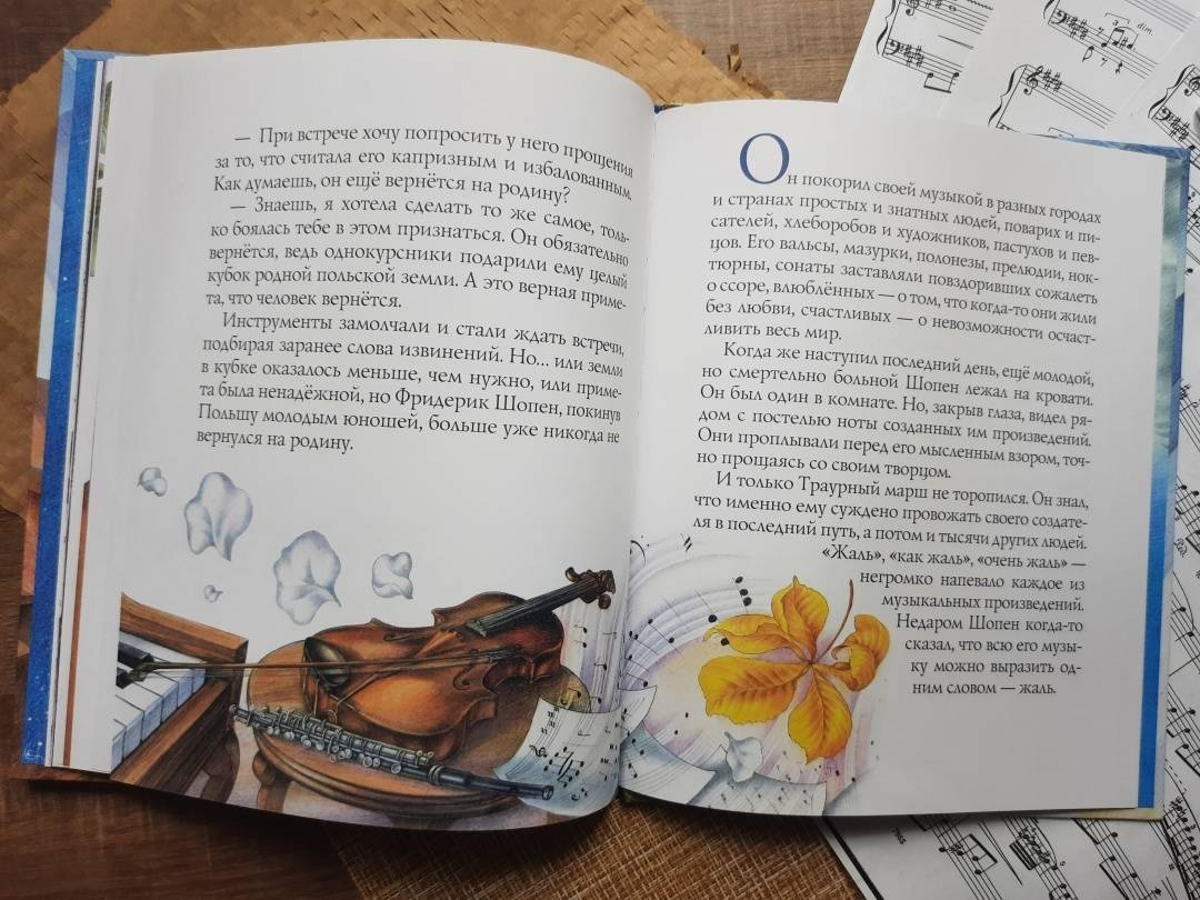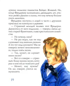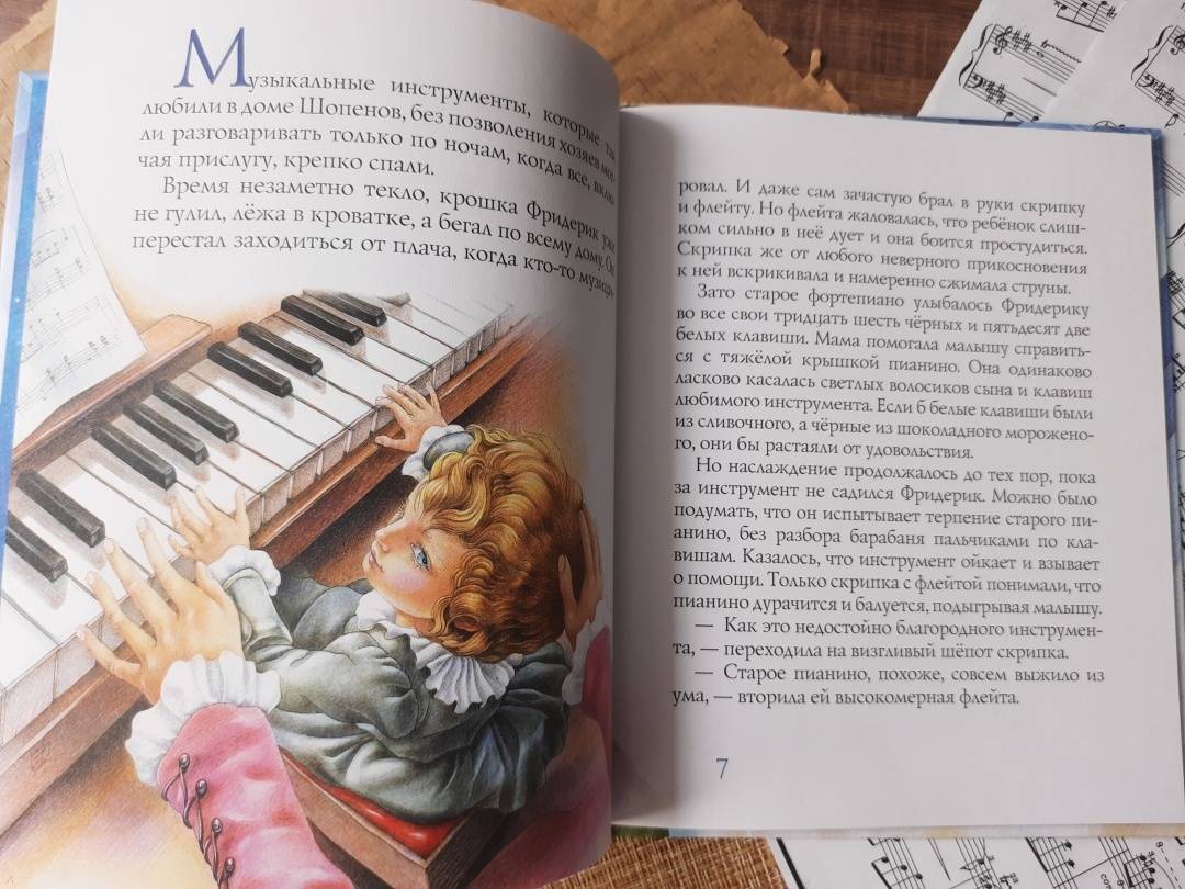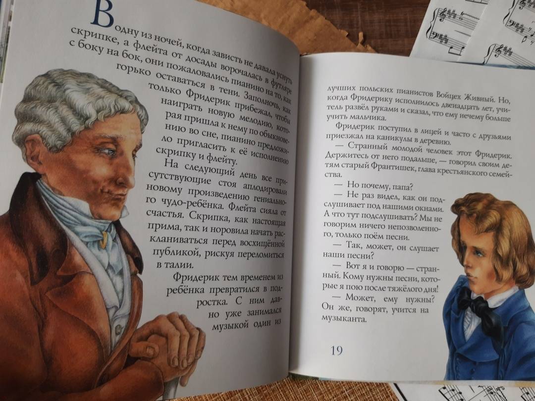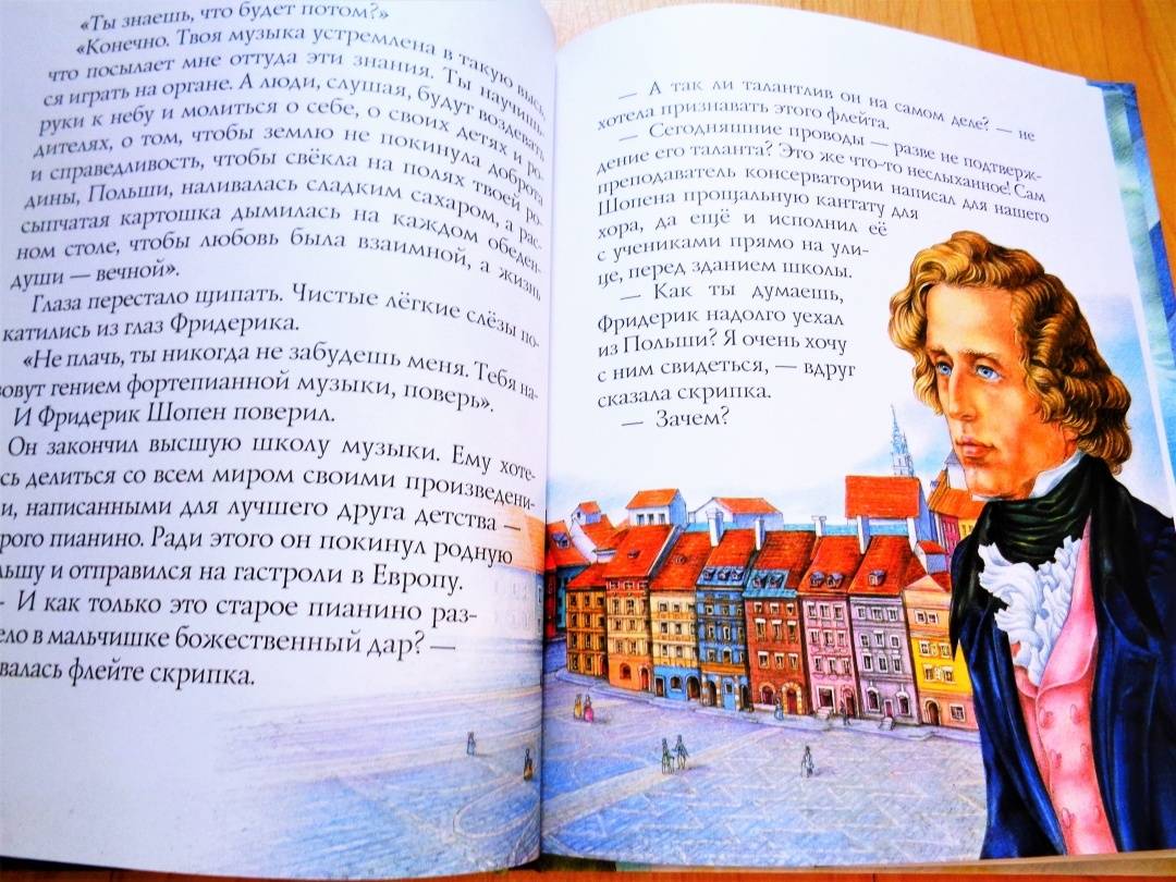 Описание«Музыка не имеет отечества, отечество её вся Вселенная», так сказал великий польский композитор, пианист и педагог Фридерик Шопен. С самого раннего детства Фридерик увлёкся игрой на фортепиано. Пианино, что стояло в доме родителей, стало его лучшим другом. С ним он делился радостями и бедами, перенося все свои чувства в музыку.Для дошкольного и младшего школьного возраста.«Музыка не имеет отечества, отечество её вся Вселенная», так сказал великий польский композитор, пианист и педагог Фридерик Шопен. С самого раннего детства Фридерик увлёкся игрой на фортепиано. Пианино, что стояло в доме родителей, стало его лучшим другом. С ним он делился радостями и бедами, перенося все свои чувства в музыку.Для дошкольного и младшего школьного возраста.