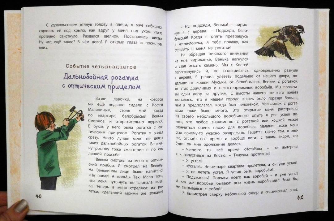 ОписаниеЕсли бы Костя Малинин и Юра Баранкин не получили двойки по геометрии, то ничего невероятного, возможно, и не произошло бы. Но друзьям так не хотелось исправлять оценки, что они готовы были на что угодно... даже превратиться в воробьёв или бабочек! Никаких уроков, сплошные каникулы и свободная жизнь - разве не чудо? А если верить в чудеса, то они непременно случаются...Знаменитую повесть-сказку известного детского писателя Валерия Медведева знают и любят уже несколько поколений читателей.Для младшего и среднего школьного возраста.Если бы Костя Малинин и Юра Баранкин не получили двойки по геометрии, то ничего невероятного, возможно, и не произошло бы. Но друзьям так не хотелось исправлять оценки, что они готовы были на что угодно... даже превратиться в воробьёв или бабочек! Никаких уроков, сплошные каникулы и свободная жизнь - разве не чудо? А если верить в чудеса, то они непременно случаются...Знаменитую повесть-сказку известного детского писателя Валерия Медведева знают и любят уже несколько поколений читателей.Для младшего и среднего школьного возраста.