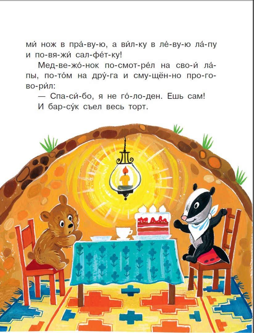 • все слова с ударениями и разбиты на слоги,