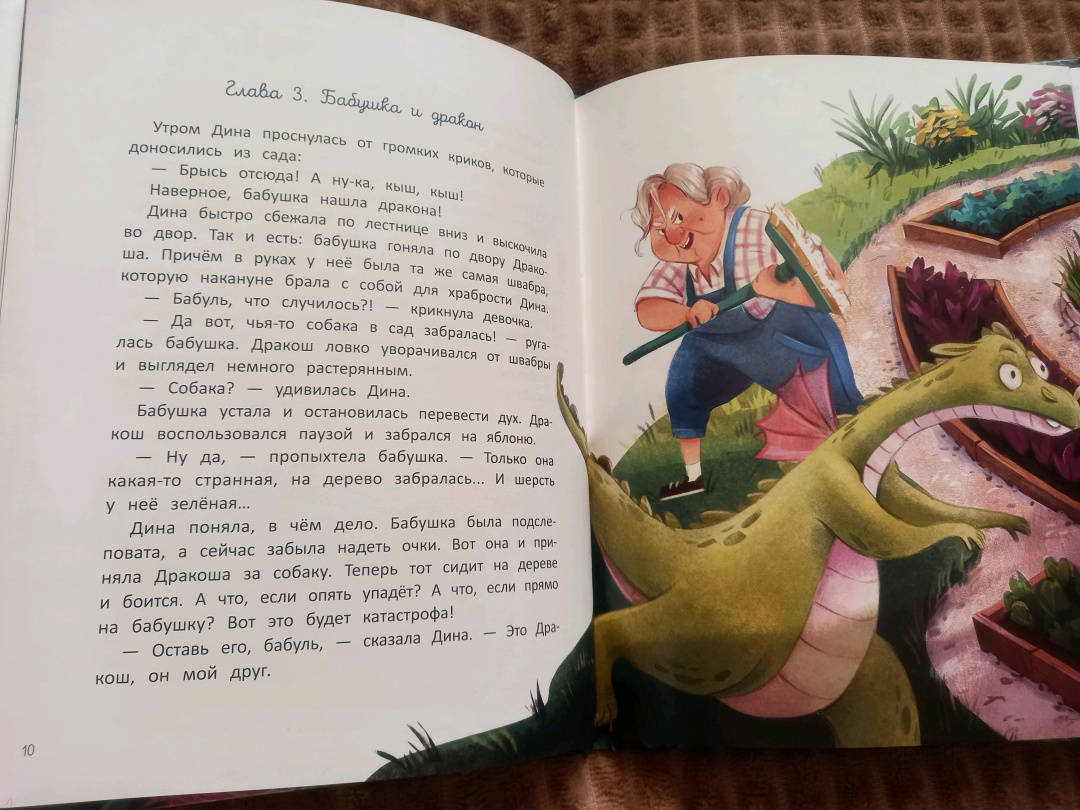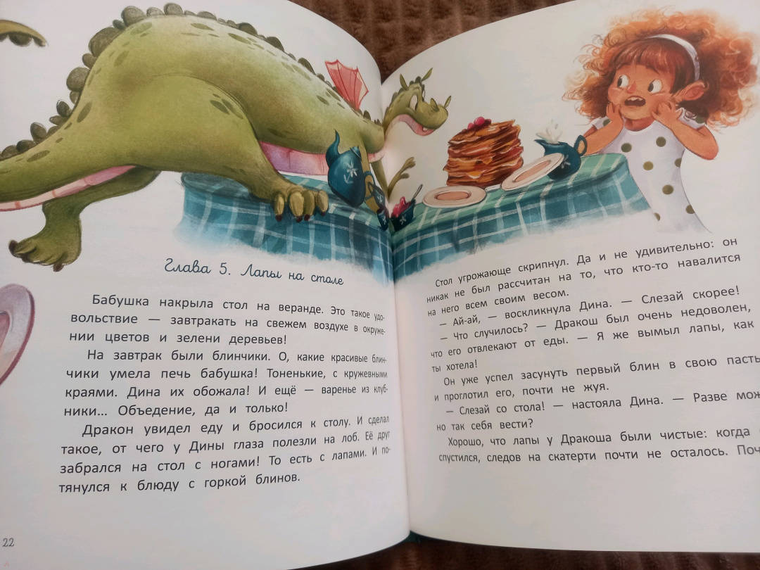 ОписаниеОднажды в жизни Дины появился настоящий дракон. Появился и даже "здравствуй" не сказал! Да и вообще был не очень вежлив: затоптал бабушкины грядки, лез с ногами на стол, чавкал, отказывался умываться и мыть лапы, забывал о вежливых словах - ни тебе "спасибо", ни "пожалуйста". Нет, так не пойдёт! Придётся Дине воспитать этого невежу!Для детей дошкольного и младшего школьного возраста.Однажды в жизни Дины появился настоящий дракон. Появился и даже "здравствуй" не сказал! Да и вообще был не очень вежлив: затоптал бабушкины грядки, лез с ногами на стол, чавкал, отказывался умываться и мыть лапы, забывал о вежливых словах - ни тебе "спасибо", ни "пожалуйста". Нет, так не пойдёт! Придётся Дине воспитать этого невежу!Для детей дошкольного и младшего школьного возраста.