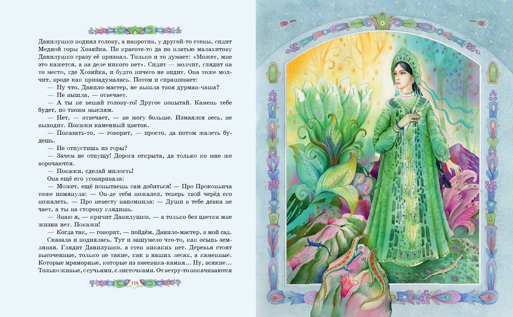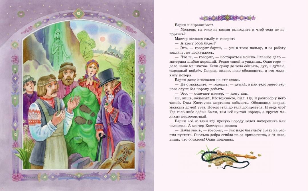 ОписаниеКнига сказов Павла Бажова "Медной горы Хозяйка" наполнена красотой. Это и красота природы, и красота своеобразной, неторопливой речи, и красота человеческих характеров, и, конечно, красота удивительных сокровищ древнего Уральского края. Перелистывая страницы, мы словно перебираем в руках драгоценные самоцветы: примеряем украшения из малахитовой шкатулки, отправляемся в подземное царство, мечтаем отыскать небывалый Каменный цветок. Среди десяти сказов-самоцветов непременно будет тот, что создан именно для вас. И подарит его сама Хозяйка Медной горы. Чудесные иллюстрации современной художницы Елены Шафранской созданы в традиционном русском стиле. Они позволят заглянуть и в сказочные чертоги владычицы Уральских гор, и в волшебный каменный лес, и в барский особняк. От образов простых людей - мастеров, старателей, рабочих - словно веет настоящим, живым теплом. А Хозяйка является в разных обличьях, но всякий раз её несложно узнать. Подарочный формат. Твердый переплёт с тиснением и частичным лаком. Плотная тонированная бумага. Чёткий, удобный для чтения шрифт.Для среднего школьного возраста.СвернутьКнига сказов Павла Бажова "Медной горы Хозяйка" наполнена красотой. Это и красота природы, и красота своеобразной, неторопливой речи, и красота человеческих характеров, и, конечно, красота удивительных сокровищ древнего Уральского края. Перелистывая страницы, мы словно перебираем в руках драгоценные самоцветы: примеряем украшения из малахитовой шкатулки, отправляемся в подземное царство, мечтаем отыскать небывалый Каменный цветок. Среди десяти сказов-самоцветов непременно будет тот, что создан именно для вас. И подарит его сама Хозяйка Медной горы. Чудесные иллюстрации современной художницы Елены Шафранской созданы в традиционном русском стиле. Они позволят заглянуть и в сказочные чертоги владычицы Уральских гор, и в волшебный каменный лес, и в барский особняк. От образов простых людей - мастеров, старателей, рабочих - словно веет настоящим, живым теплом. А Хозяйка является в разных обличьях, но всякий раз её несложно узнать. Подарочный формат. Твердый переплёт с тиснением и частичным лаком. Плотная тонированная бумага. Чёткий, удобный для чтения шрифт.Для среднего школьного возраста.СвернутьСвернуть