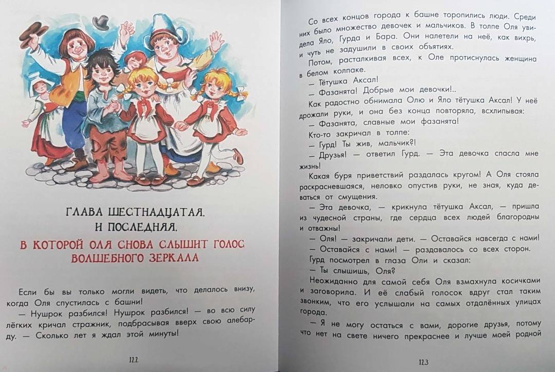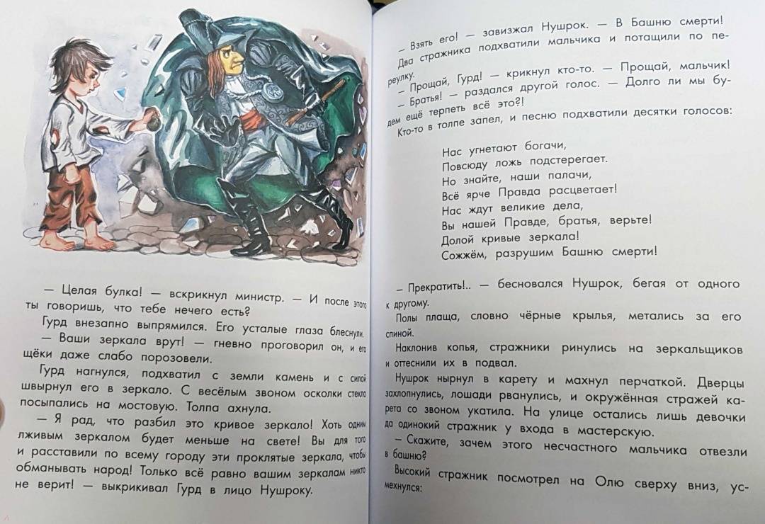 ОписаниеВиталий Губарев - любимый писатель многих советских школьниц, которые зачитывались сказкой "Королевство кривых зеркал" и бегали в кино на одноимённый фильм.Девочка Оля внезапно очутилась в волшебной стране, полной зеркал. Только зеркала были странными - кривыми. И отражалась в них не правда, а ложь. Оля очень любила смотреть на себя в зеркало, но видела не лентяйку и вредину, а красивую милую девочку - как и все жители Королевства кривых зеркал. Пытаясь спасти из темницы мальчика Гурда, Оля и её двойник-отражение Яло смогут проявить свои лучшие качества: смелость, находчивость, упорство.Для детей младшего школьного возраста.Виталий Губарев - любимый писатель многих советских школьниц, которые зачитывались сказкой "Королевство кривых зеркал" и бегали в кино на одноимённый фильм.Девочка Оля внезапно очутилась в волшебной стране, полной зеркал. Только зеркала были странными - кривыми. И отражалась в них не правда, а ложь. Оля очень любила смотреть на себя в зеркало, но видела не лентяйку и вредину, а красивую милую девочку - как и все жители Королевства кривых зеркал. Пытаясь спасти из темницы мальчика Гурда, Оля и её двойник-отражение Яло смогут проявить свои лучшие качества: смелость, находчивость, упорство.Для детей младшего школьного возраста.