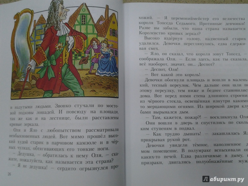 ОписаниеВ нашем издании представлена сказочная повесть Виталия Георгиевича Губарева - "Королевство кривых зеркал" с иллюстрациями С. Бордюга и Н. Трепенок. Жизнь в зазеркальном мире страшно несправедлива: власть принадлежит злодеям, а простым честным людям приходится ох как несладко. Но Оля и Яло, девочки-школьницы, перевернут всё Королевство кривых зеркал с ног на голову. Попав в волшебное королевство, девочки научатся смотреть на себя со стороны, видеть свои недостатки и решат их обязательно исправить!Для детей младшего школьного возраста.В нашем издании представлена сказочная повесть Виталия Георгиевича Губарева - "Королевство кривых зеркал" с иллюстрациями С. Бордюга и Н. Трепенок. Жизнь в зазеркальном мире страшно несправедлива: власть принадлежит злодеям, а простым честным людям приходится ох как несладко. Но Оля и Яло, девочки-школьницы, перевернут всё Королевство кривых зеркал с ног на голову. Попав в волшебное королевство, девочки научатся смотреть на себя со стороны, видеть свои недостатки и решат их обязательно исправить!Для детей младшего школьного возраста.