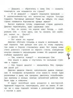 ОписаниеЖила-была девочка Оля. Добрая, но рассеянная, ленивая и, честно говоря, не очень храбрая. Недостатков в себе она не замечала и исправлять их не собиралась, а все оттого, что не могла взглянуть на себя со стороны. Однажды она оказалась по ту сторону волшебного зеркала и встретила Яло - точь-в- точь такую же девочку, как она сама, только смелую, прилежную и уж совсем не растеряшу! Оля и Яло вместе отправятся в Королевство кривых зеркал, где их ждут удивительные и опасные приключения. Но знаете, что самое удивительное? В конце этой истории Оля станет гораздо храбрее и организованнее, а вот Яло совсем наоборот - тут-то Оля и поймет, как она выглядела со стороны.Для детей 7-10 лет.Жила-была девочка Оля. Добрая, но рассеянная, ленивая и, честно говоря, не очень храбрая. Недостатков в себе она не замечала и исправлять их не собиралась, а все оттого, что не могла взглянуть на себя со стороны. Однажды она оказалась по ту сторону волшебного зеркала и встретила Яло - точь-в- точь такую же девочку, как она сама, только смелую, прилежную и уж совсем не растеряшу! Оля и Яло вместе отправятся в Королевство кривых зеркал, где их ждут удивительные и опасные приключения. Но знаете, что самое удивительное? В конце этой истории Оля станет гораздо храбрее и организованнее, а вот Яло совсем наоборот - тут-то Оля и поймет, как она выглядела со стороны.Для детей 7-10 лет.