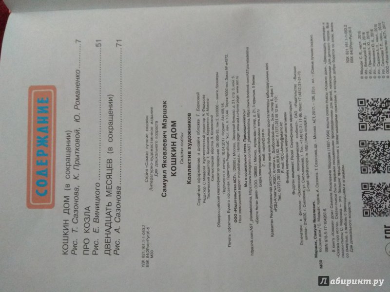 Объем, стр. 128 ISBN 978-5-17-104263-9 Автор Маршак Самуил Яковлевич, Прыткова Ксения, Романенко Ю. А., Сазонова Т. П. Художник Прыткова Ксения Юрьевна, Романенко Ю. А., Сазонова Т. П. Серия Самые лучшие сказки Масса 500 г Размеры 288x214x10 мм Язык Русский Год издания книги 2017 Тип обложки Твердый переплет Иллюстрации Цветные Вес, г 514г Размеры 264х204х14 мм - Отзывы