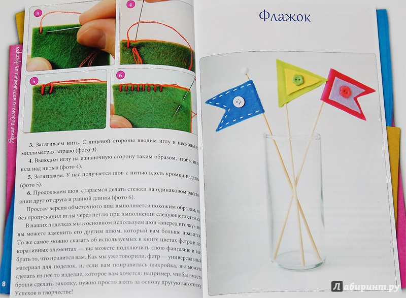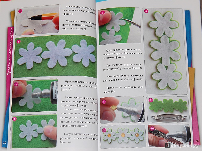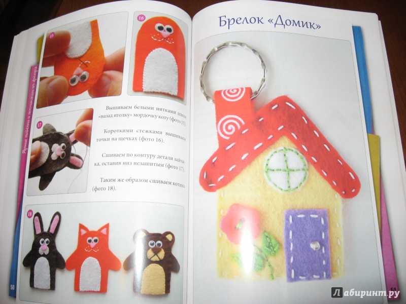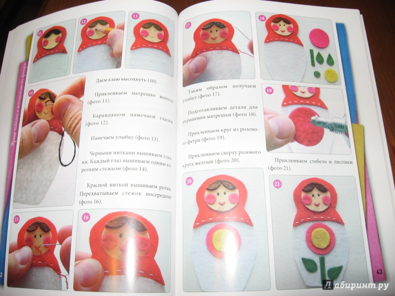 ОписаниеЯркие и красивые поделки из фетра обязательно понравятся и взрослым, и детям, а самое главное, что сделать их совсем несложно! Фетр - прекрасный материал, который можно использовать для создания совершенно различных изделий: его можно клеить, как бумагу, и шить из него, как из ткани. Из этой книги вы узнаете, как сделать игрушки, закладку, брелок, заколки и броши, аппликацию и многое другое. Освоив основные приемы работы с фетром, вы откроете для себя безграничные возможности для воплощения собственных идей и задумок.Яркие и красивые поделки из фетра обязательно понравятся и взрослым, и детям, а самое главное, что сделать их совсем несложно! Фетр - прекрасный материал, который можно использовать для создания совершенно различных изделий: его можно клеить, как бумагу, и шить из него, как из ткани. Из этой книги вы узнаете, как сделать игрушки, закладку, брелок, заколки и броши, аппликацию и многое другое. Освоив основные приемы работы с фетром, вы откроете для себя безграничные возможности для воплощения собственных идей и задумок.