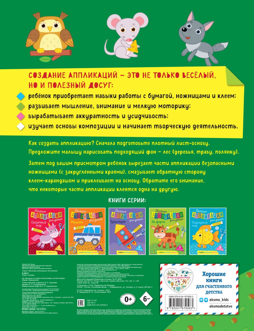 Объем, стр. 16 ISBN 978-5-04-167958-3 Автор Чемеркина Мария Художник Чемеркина Мария Серия Весёлые аппликации для детей Язык Русский Год издания книги 2022 Тип обложки Мягкий переплет Иллюстрации Цветные Вес, г 58г Размеры 255х195х2 мм - Отзывы