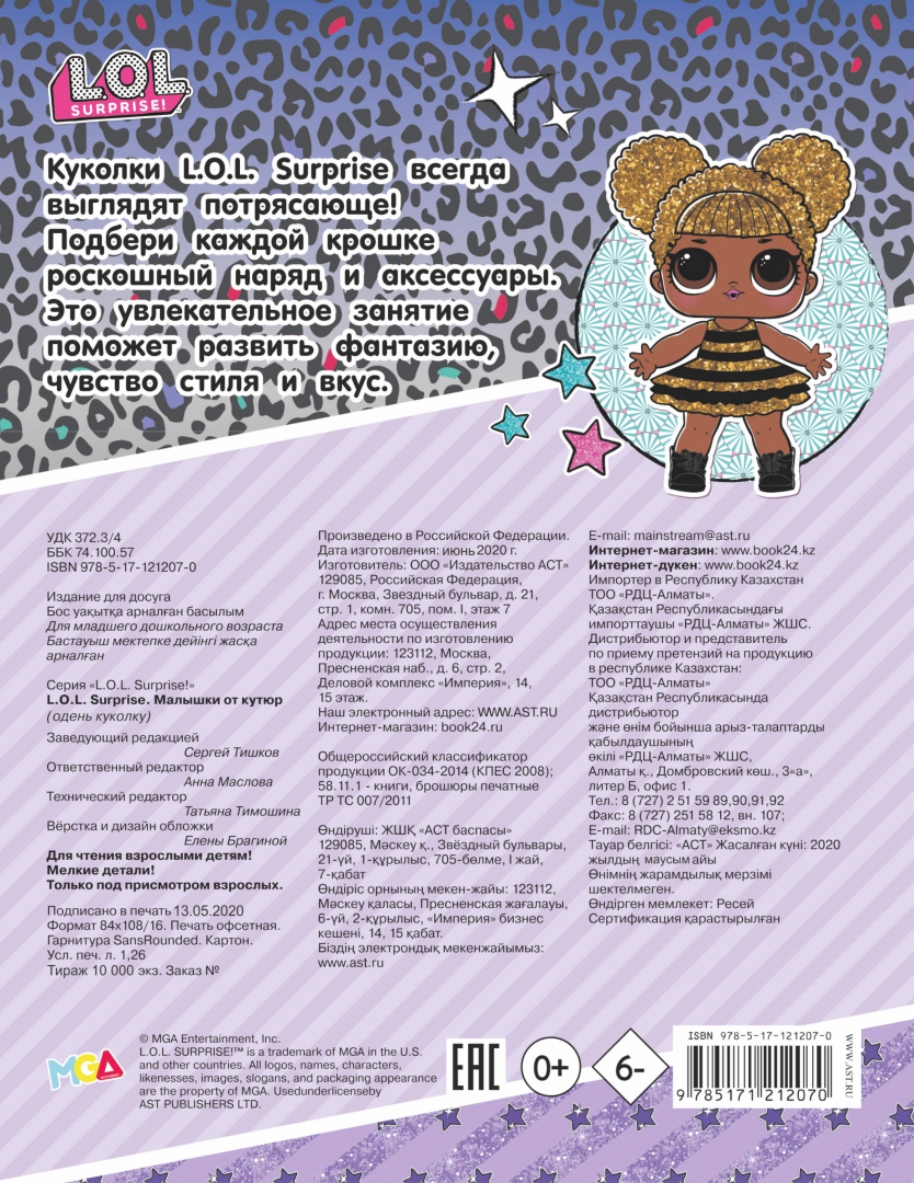 Объем, стр. 12 ISBN 978-5-17-121207-0 Серия L.O.L. Surprise! Язык Русский Год издания книги 2020 Тип обложки Мягкий переплет Иллюстрации Цветные Вес, г 100г Размеры 255х200х3 мм - Отзывы