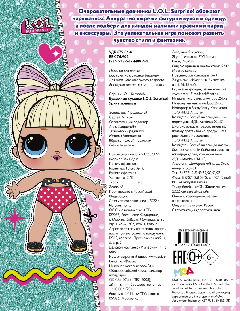 Объем, стр. 24 ISBN 978-5-17-148914-4 Серия L.O.L. Surprise! Язык Русский Год издания книги 2022 Тип обложки Мягкий переплет Иллюстрации Цветные Вес, г 84г Размеры 255х195х2 мм - Отзывы