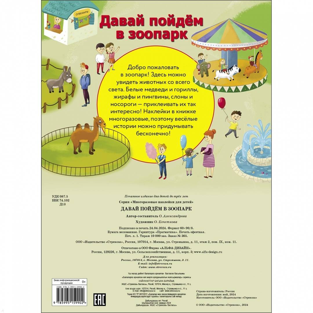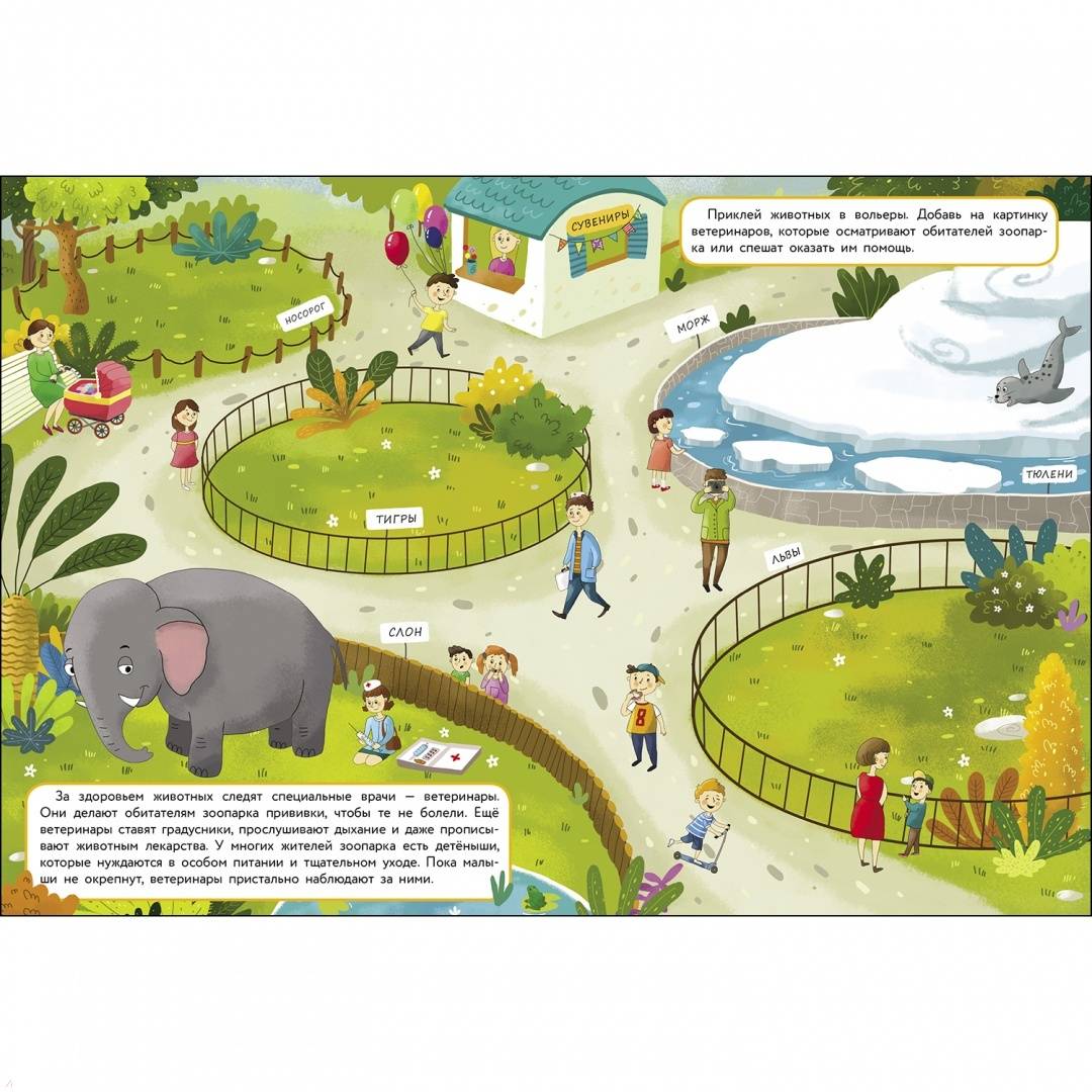 ОписаниеДобро пожаловать в зоопарк! Здесь можно увидеть животных со всего света. Белые медведи и гориллы, жирафы и пингвины, слоны и носороги – приклеивать их так интересно! Наклейки в книжке многоразовые, поэтому весёлые истории можно придумывать бесконечно!Добро пожаловать в зоопарк! Здесь можно увидеть животных со всего света. Белые медведи и гориллы, жирафы и пингвины, слоны и носороги – приклеивать их так интересно! Наклейки в книжке многоразовые, поэтому весёлые истории можно придумывать бесконечно!