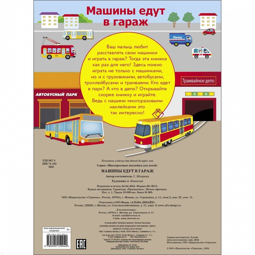 ОписаниеВаш малыш любит расставлять свои машинки и играть в гараж? Тогда эта книжка как раз для него! Здесь можно играть не только с машинками, но и с грузовиками, автобусами, троллейбусами и трамваями. Кто едет в парк? А кто в депо? Открывайте скорее книжку и играйте. Ведь с нашими многоразовыми наклейками это так интересно!Ваш малыш любит расставлять свои машинки и играть в гараж? Тогда эта книжка как раз для него! Здесь можно играть не только с машинками, но и с грузовиками, автобусами, троллейбусами и трамваями. Кто едет в парк? А кто в депо? Открывайте скорее книжку и играйте. Ведь с нашими многоразовыми наклейками это так интересно!