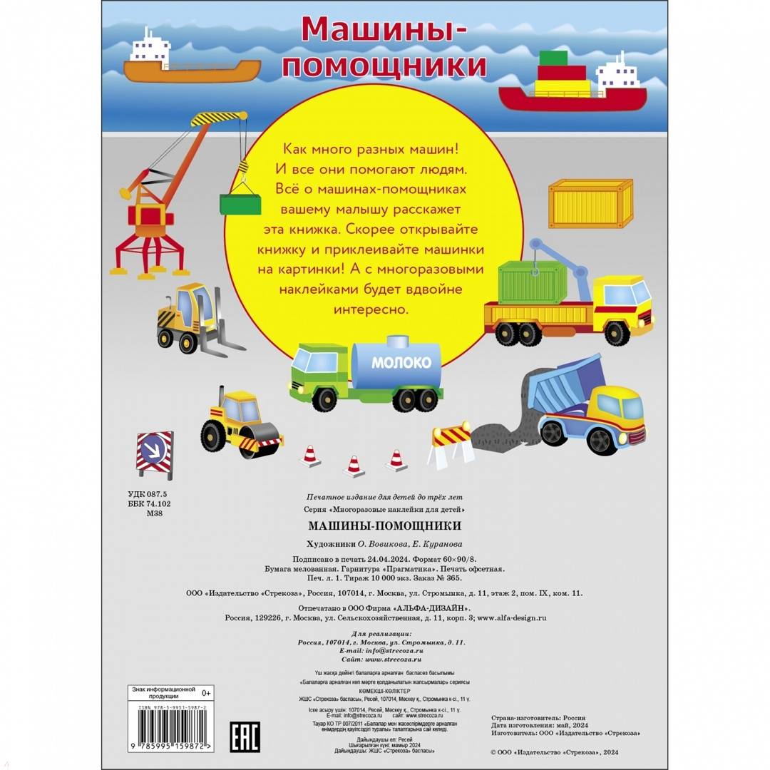 ОписаниеКак много разных машин! И все они помогают людям. Всё о машинах-помощниках вашему малышу расскажет эта книжка. А с многоразовыми наклейками будет вдвойне интересно. Скорее открывайте книжку и приклеивайте машинки на странички.Как много разных машин! И все они помогают людям. Всё о машинах-помощниках вашему малышу расскажет эта книжка. А с многоразовыми наклейками будет вдвойне интересно. Скорее открывайте книжку и приклеивайте машинки на странички.