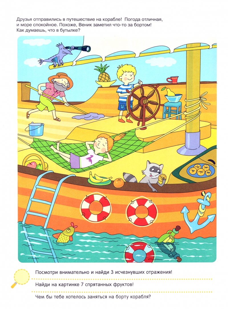 ОписаниеВ основе новой серии Маши Агапиной "Творим и вытворяем" лежит концепция развития ребёнка через игру и продуктивные виды деятельности.На этот раз дети отправятся в морское путешествие вместе с любимыми героями - неутомимым Николасом и его подругой Олей. Впереди их ждут настоящие приключения с пиратами и сокровищами, а ещё много увлекательных заданий, направленных на развитие внимания, памяти, мышления, воображения, наблюдательности, а также поделки из самых разных материалов, рисунки в нетрадиционных техниках, оригами и аппликация.Для занятий взрослых с детьми дошкольного возраста. 2-е издание, стереотипное.В основе новой серии Маши Агапиной "Творим и вытворяем" лежит концепция развития ребёнка через игру и продуктивные виды деятельности.На этот раз дети отправятся в морское путешествие вместе с любимыми героями - неутомимым Николасом и его подругой Олей. Впереди их ждут настоящие приключения с пиратами и сокровищами, а ещё много увлекательных заданий, направленных на развитие внимания, памяти, мышления, воображения, наблюдательности, а также поделки из самых разных материалов, рисунки в нетрадиционных техниках, оригами и аппликация.Для занятий взрослых с детьми дошкольного возраста. 2-е издание, стереотипное.