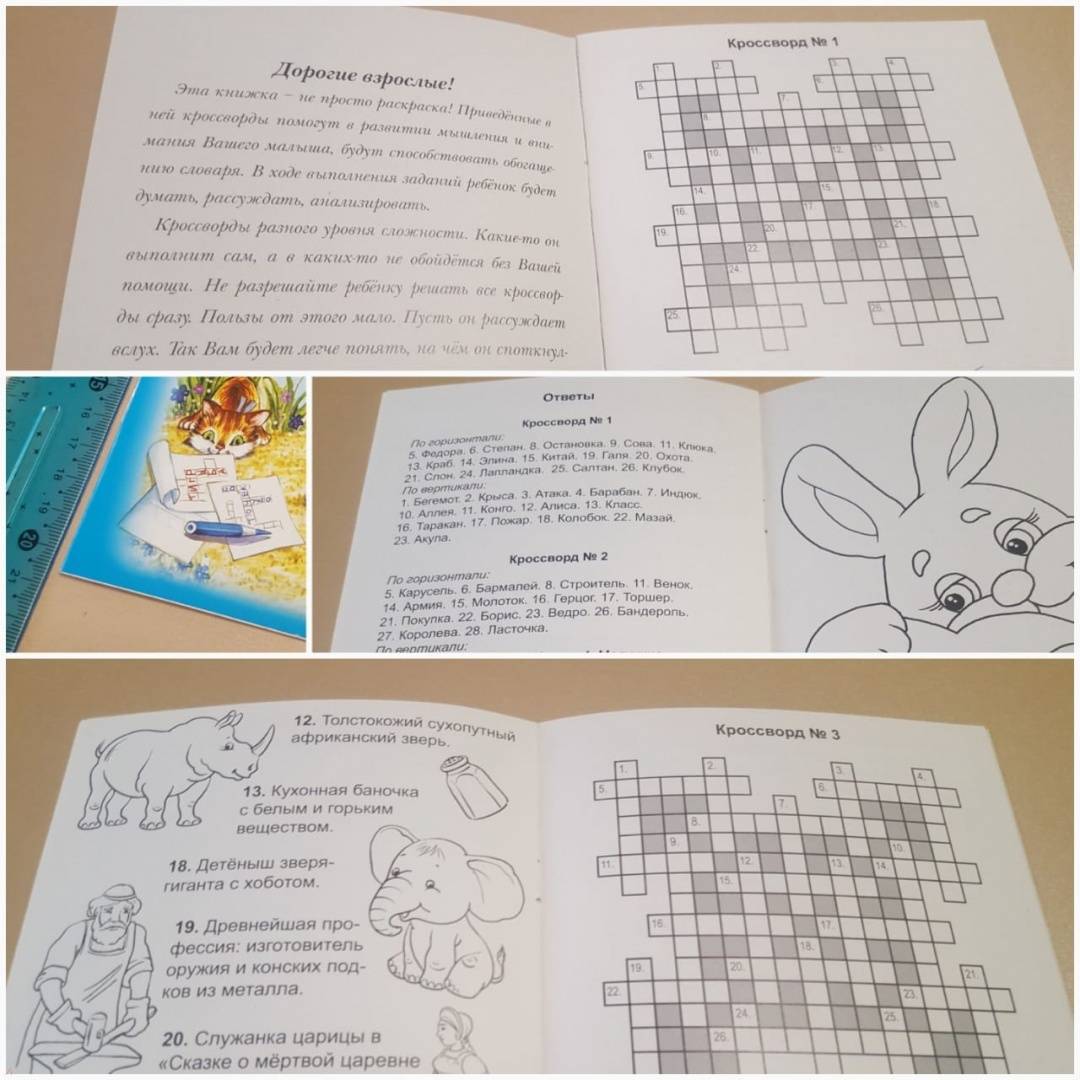 ОписаниеДорогие взрослые!Эта книжка - не просто раскраска! Приведённые в ней кроссворды помогут в развитии мышления и внимания Вашего малыша, будут способствовать обогащению словаря. В ходе выполнения заданий ребёнок будет думать, рассуждать, анализировать.Кроссворды разного уровня сложности. Какие-то он выполнит сам, а в каких-то не обойдётся без Вашей помощи. Не разрешайте ребёнку решать все кроссворды сразу. Пользы от этого мало. Пусть он рассуждает вслух. Так Вам будет легче понять, на чём он споткнулся. Можете осторожно помочь ему, но ни в коем случае не формулируйте вслух никаких выводов. Пусть малыш делает их самостоятельно. Он не должен уставать, а решение должно приносить радость.Мы надеемся, что наша книжка понравится Вам и Вашему малышу!Дорогие взрослые!Эта книжка - не просто раскраска! Приведённые в ней кроссворды помогут в развитии мышления и внимания Вашего малыша, будут способствовать обогащению словаря. В ходе выполнения заданий ребёнок будет думать, рассуждать, анализировать.Кроссворды разного уровня сложности. Какие-то он выполнит сам, а в каких-то не обойдётся без Вашей помощи. Не разрешайте ребёнку решать все кроссворды сразу. Пользы от этого мало. Пусть он рассуждает вслух. Так Вам будет легче понять, на чём он споткнулся. Можете осторожно помочь ему, но ни в коем случае не формулируйте вслух никаких выводов. Пусть малыш делает их самостоятельно. Он не должен уставать, а решение должно приносить радость.Мы надеемся, что наша книжка понравится Вам и Вашему малышу!