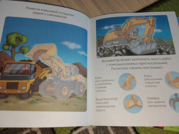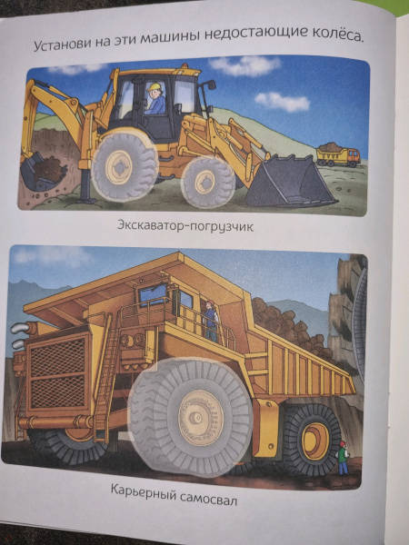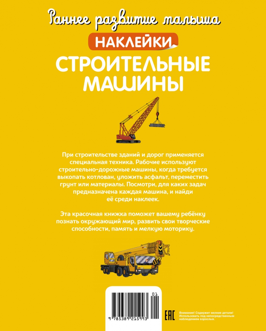 Эта красочная книжка поможет вашему ребёнку познать окружающий мир, развить свои творческие способности, память и мелкую моторику.При строительстве зданий и дорог применяется специальная техника. Рабочие используют строительно-дорожные машины, когда требуется выкопать котлован, уложить асфальт, переместить грунт или материалы. Посмотри, для каких задач предназначена аждая машина, и найди её среди наклеек.