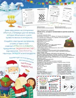 ОписаниеКаникулы просто не могут быть скучными! Пусть ребенок проведет время весело и с пользой вместе с этой зимней книгой. Вашего малыша ждут долгие часы увлекательного досуга, 150 разных и очень весёлых головоломок - загадок, лабиринтов, тестоквестов, отгадаек, упражнений на поиск отличий, игр со словами и других заданий. Столько заданий, что времени скучать просто не останется. Успеет ли маленький умник решить их все? Скорее за дело! Составитель Александр Паулан.Для младшего школьного возраста.Ура! Скоро Новый год! Проведите новогодние каникулы весело вместе с увлекательными заданиями из этого зимнего сборника. Тренируйте память, внимание, логику и