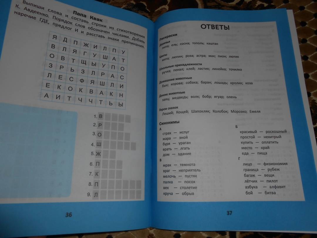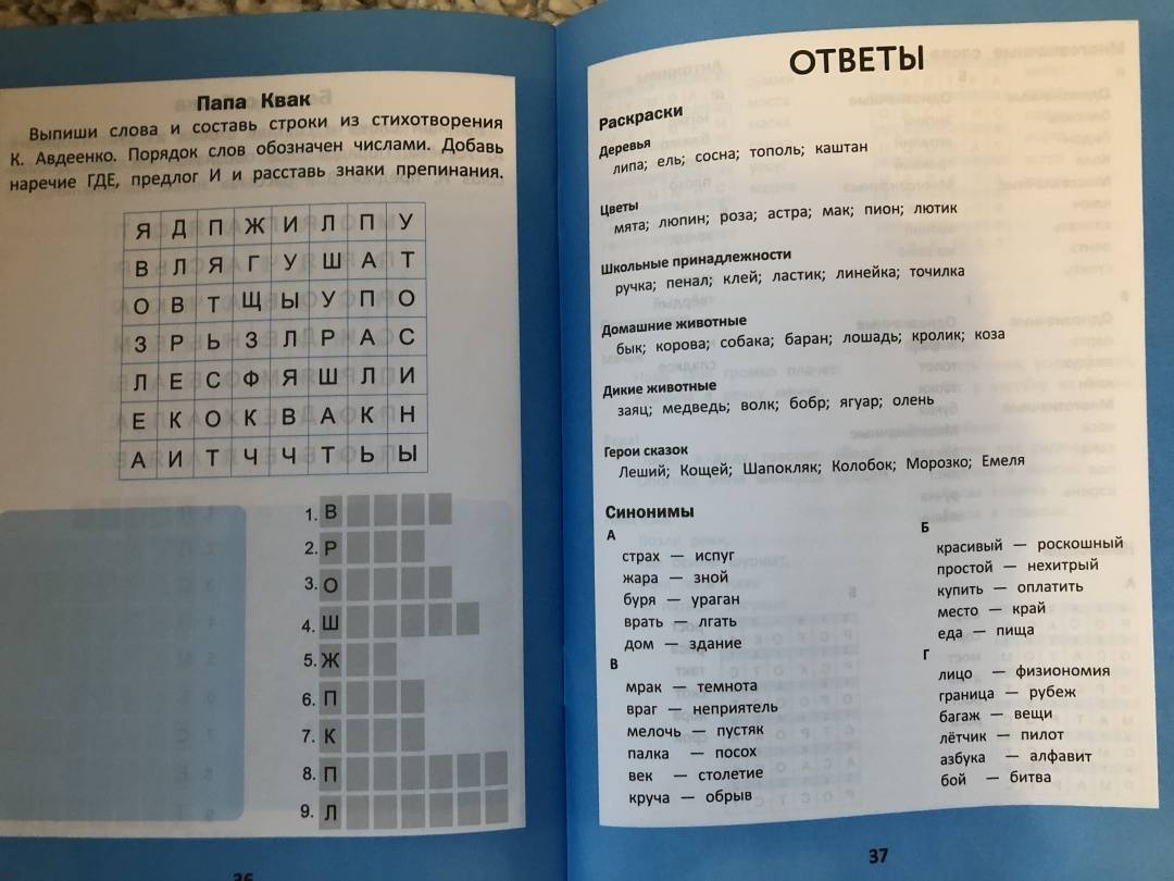 ОписаниеФилворды - детская интеллектуальная игра для тех, кто любит разгадывать кроссворды и искать спрятанные среди букв слова.Филворды используются для расширения словарного запаса. В книге они дополнены:- раскрасками (развитие мелкой моторики); - знакомством с потешками, поговорками, многозначными словами, синонимами, антонимами (развитие речи).В книге также приведены задания, в которых нужно самостоятельно составить предложение, добавив в исходную последовательность слов предлоги, союзы и другие части речи.4-е издание.Филворды - детская интеллектуальная игра для тех, кто любит разгадывать кроссворды и искать спрятанные среди букв слова.Филворды используются для расширения словарного запаса. В книге они дополнены:- раскрасками (развитие мелкой моторики); - знакомством с потешками, поговорками, многозначными словами, синонимами, антонимами (развитие речи).В книге также приведены задания, в которых нужно самостоятельно составить предложение, добавив в исходную последовательность слов предлоги, союзы и другие части речи.4-е издание.