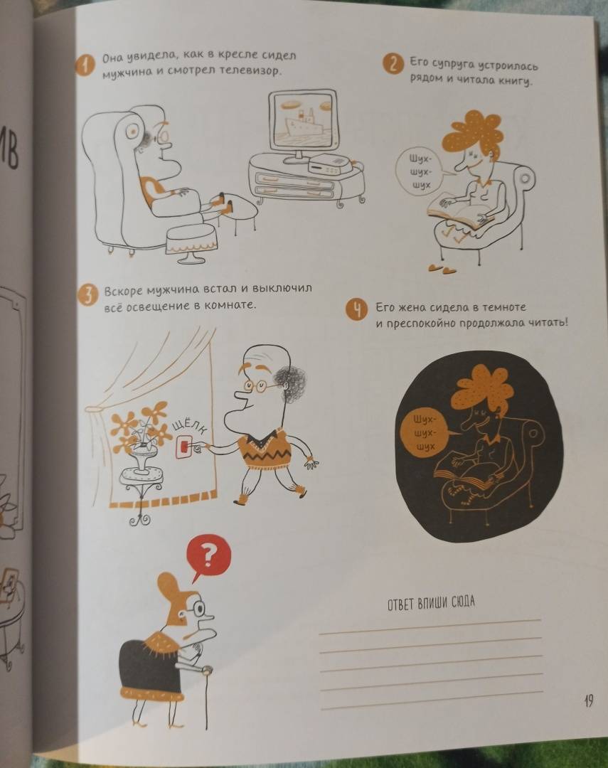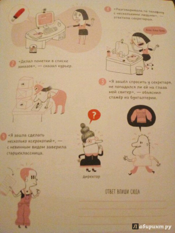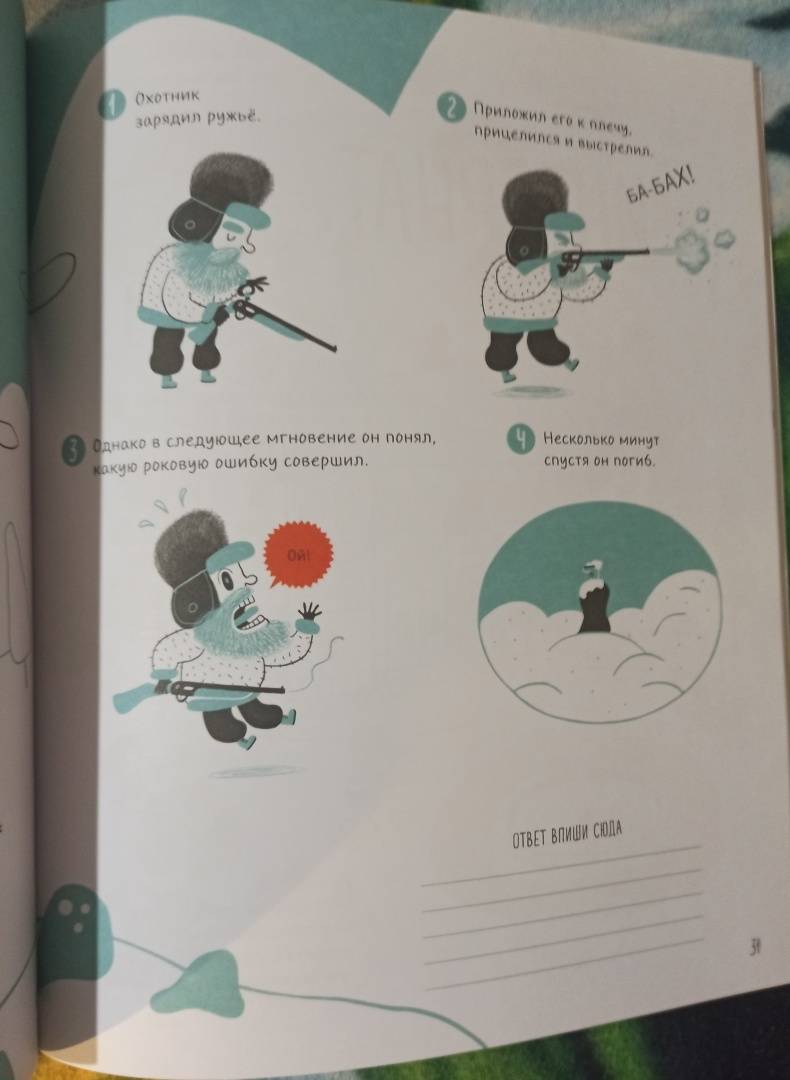 ОписаниеО книге"Энигмы. Распутай 25 таинственных историй" - это сборник загадок. Запаситесь временем и терпением, а еще, как настоящему детективу, вам понадобятся логика, наблюдательность и воображение. Помните: важна каждая деталь! Постарайтесь ничего не упустить, иначе дело останется нераскрытым.Узнайте, почему Эдвард Блас любит дождливую погоду? Кто украл старинную матрёшку? Как достать ключ из закупоренной бутылки, не разбив ее? Найдите ответы на эти и многие другие загадки!Как читать эту книгуРазгадывать задачки из этой книги можно в одиночку, всей семьёй или соревнуясь двумя командами. За каждое верное решение вам будут начисляться очки!СоветНе забывай смотреть значки, чтобы знать, на что следует полагаться: на логику или воображение.Фишки книги- Детективная книжка-квест с увлекательными заданиями.- Можно играть всей семьей, двумя командами или одному.- Развивает внимательность, логику и воображение.- Задачки помечены специальными знаками-подсказками, какие качества нужно использовать (логику или воображение), чтобы найти отгадку.- Сложность каждого задания указана в начале странички.- Большой формат.СвернутьО книге"Энигмы. Распутай 25 таинственных историй" - это сборник загадок. Запаситесь временем и терпением, а еще, как настоящему детективу, вам понадобятся логика, наблюдательность и воображение. Помните: важна каждая деталь! Постарайтесь ничего не упустить, иначе дело останется нераскрытым.Узнайте, почему Эдвард Блас любит дождливую погоду? Кто украл старинную матрёшку? Как достать ключ из закупоренной бутылки, не разбив ее? Найдите ответы на эти и многие другие загадки!Как читать эту книгуРазгадывать задачки из этой книги можно в одиночку, всей семьёй или соревнуясь двумя командами. За каждое верное решение вам будут начисляться очки!СоветНе забывай смотреть значки, чтобы знать, на что следует полагаться: на логику или воображение.Фишки книги- Детективная книжка-квест с увлекательными заданиями.- Можно играть всей семьей, двумя командами или одному.- Развивает внимательность, логику и воображение.- Задачки помечены специальными знаками-подсказками, какие качества нужно использовать (логику или воображение), чтобы найти отгадку.- Сложность каждого задания указана в начале странички.- Большой формат.СвернутьСвернуть