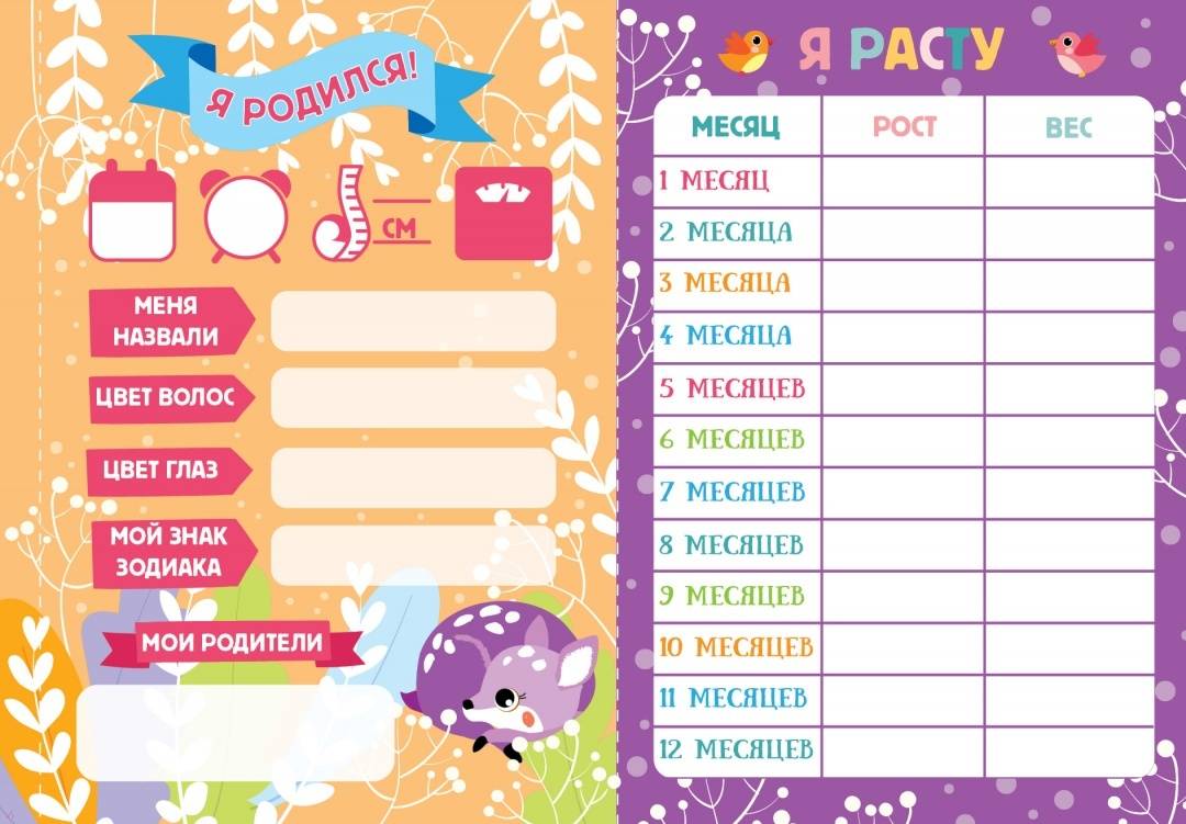 ОписаниеКогда на свет появляется малыш, хочется запечатлеть каждый момент его новой жизни, каждое достижение! В этой книжке вы найдёте наклейки, чтобы оформить альбом с фотографиями вашего малыша. В книжке есть карточки, в которые можно записать важную информацию - график роста и веса от рождения до года, параметры при рождении, когда появились зубки, обвести ручку и ступню. А ещё - любимые песенки, потешки и колыбельные.Для широкого круга читателей.Когда на свет появляется малыш, хочется запечатлеть каждый момент его новой жизни, каждое достижение! В этой книжке вы найдёте наклейки, чтобы оформить альбом с фотографиями вашего малыша. В книжке есть карточки, в которые можно записать важную информацию - график роста и веса от рождения до года, параметры при рождении, когда появились зубки, обвести ручку и ступню. А ещё - любимые песенки, потешки и колыбельные.Для широкого круга читателей.