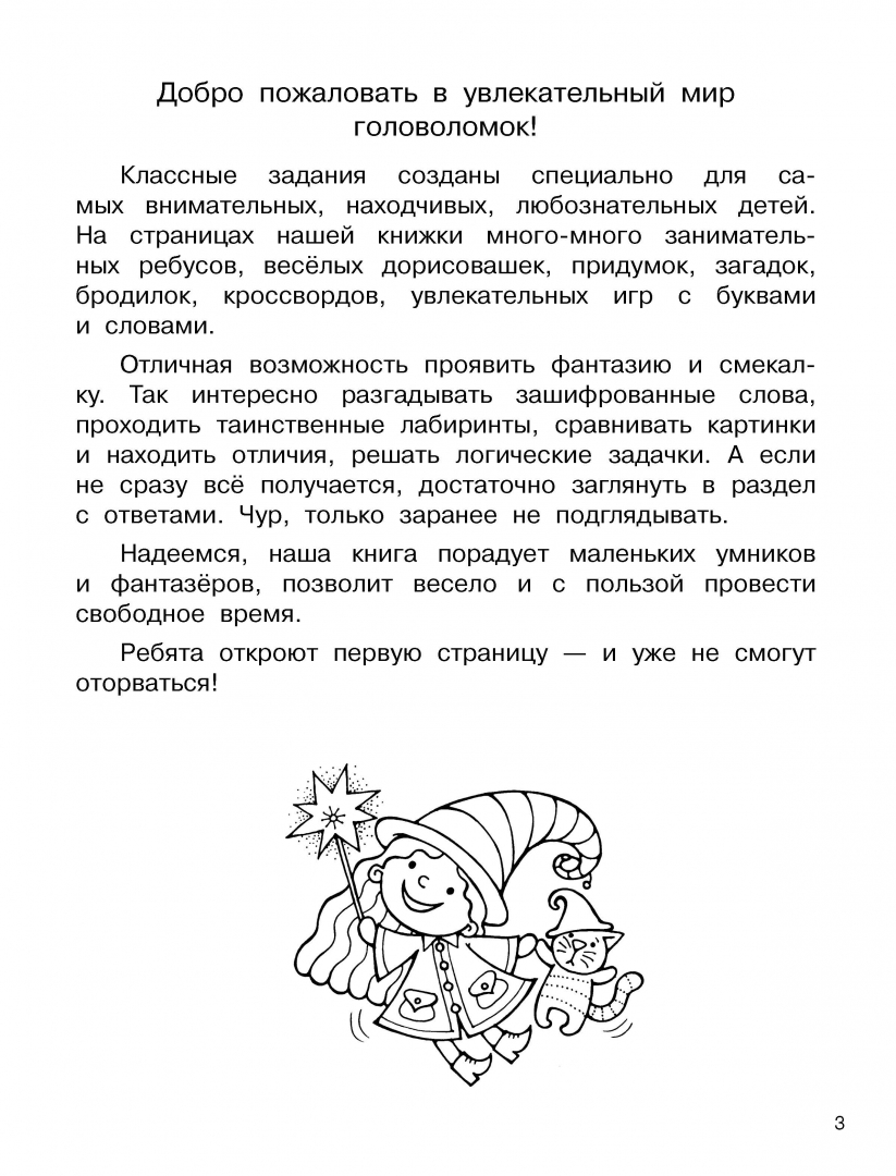 Описание"Задания на сообразительность и смекалку" - отличный подарок для самых любознательных, внимательных, находчивых. Малыши потренируются разгадывать ребусы и головоломки, проходить лабиринты, находить правильные решения для интересных логических задачек, и конечно, научатся быть внимательными, старательными и аккуратными, размышлять, видеть главное и второстепенное, сравнивать, фантазировать - это очень интересно!Составитель - Дмитриева Валентина Геннадьевна.Для дошкольного возраста.Увлекательное путешествие в мир лабиринтов, игр и головоломок. Разгадывая увлекательные логические задачки и проходя лабиринты, малыш тренирует пальчики, расширяет словарный запас, развивает речь, память, внимание, логику, креативное мышление.