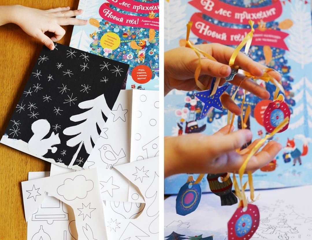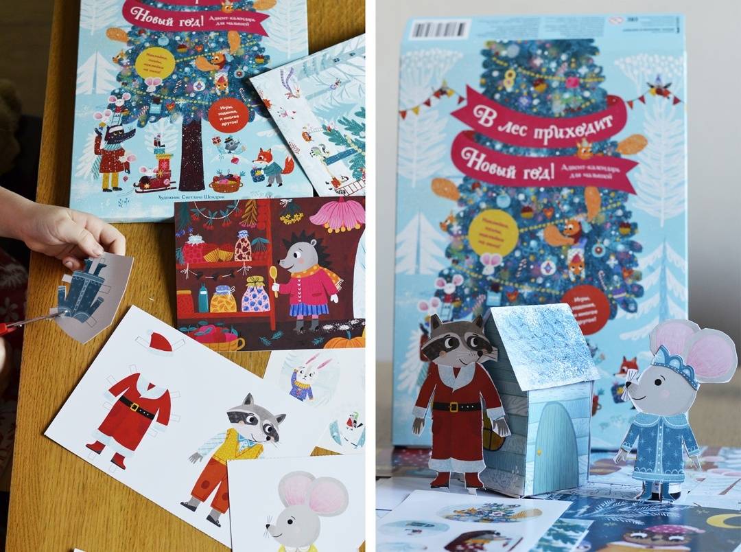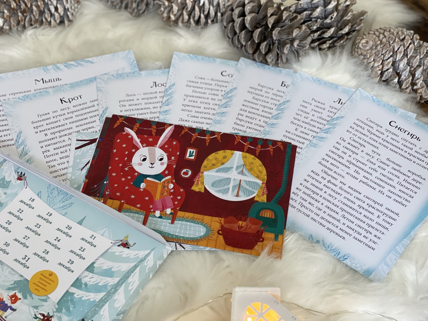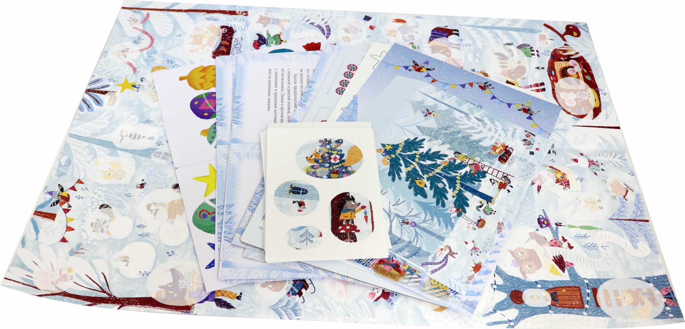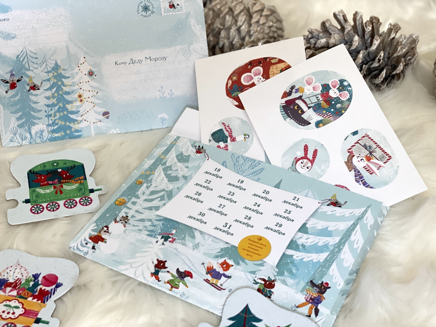 ОписаниеВремя перед новым годом — волшебное. Кругом царит приятная суета. С помощью этого веселого и полезного адвент-календаря вы с малышом проведете время перед Новым годом в атмосфере тепла и уюта.Наступила зима. Пушистый снежок укутал деревья, припорошил тропинки, опушки, пеньки и кустики. Весь лес как будто замер в хрустальной тишине и сверкает на солнышке серебром. Только на лесной полянке большое оживление... До Нового года остаётся всего две недели и пора начинать готовиться к празднику! Кто же в лесу наряжает ёлку, готовит подарки и угощения?В набор входит:большой плакат14 листов с наклейками, которые надо приклеивать на плакат14 открыток с лесными животнымипазл-паровозикнаклейки на окнабланк письма Деду Морозубумажные куклы с костюмаминовогодняя аппликациядве открытки для раскрашиваниягирляндаелочная игрушка (домик)конверт, который нужно наполнять каждый день.ИнструкцияНачните играть за 14 дней до Нового года. Перед началом игры повесьте на стену плакат и разрежьте пополам картонные листы с открытками и заданиями.У вас должно получиться 14 открыток с животными и по две карточки на каждое задание. Бланк письма Деду Морозу и листы с наклейками на окна нужно сложить пополам. Кроме этого, у вас есть 14 листов с наклейками для плаката и 6 пазлов. В конверт, который вы найдёте внутри набора, каждый день нужно класть одну открытку с животными, один лист с наклейками для плаката и две карточки с заданиями или одну деталь пазла-паровозика, или по два листа с наклейками на окна. Бланк письма Деду Морозу мы рекомендуем положить в самом начале игры, тогда вы успеете отправить письмо. Каждый день давайте наполненный конверт ребёнку.Адвент-календарь предназначен для проведения веселого досуга вместе с ребенком в ожидании праздника. Для выполнения некоторых заданий малышу может потребоваться помощь взрослых (например, в вырезании разных деталей).К концу игры малыш будет готов к встрече Нового года. Большой красочный плакат заполнится наклейками, и его можно будет рассматривать до самой весны! Окна украсят красивые наклейки, гирлянда и другие новогодние игрушки займут свое место, письмо Деду Морозу расскажет новогоднему волшебнику о самых сокровенных желаниях, и даже праздничные открытки для близких будут готовы.Для кого этот календарьДля детей от 4 лет и их родителей, которые с нетерпением ждут наступления Нового года.СвернутьВремя перед новым годом — волшебное. Кругом царит приятная суета. С помощью этого веселого и полезного адвент-календаря вы с малышом проведете время перед Новым годом в атмосфере тепла и уюта.Наступила зима. Пушистый снежок укутал деревья, припорошил тропинки, опушки, пеньки и кустики. Весь лес как будто замер в хрустальной тишине и сверкает на солнышке серебром. Только на лесной полянке большое оживление... До Нового года остаётся всего две недели и пора начинать готовиться к празднику! Кто же в лесу наряжает ёлку, готовит подарки и угощения?В набор входит:большой плакат14 листов с наклейками, которые надо приклеивать на плакат14 открыток с лесными животнымипазл-паровозикнаклейки на окнабланк письма Деду Морозубумажные куклы с костюмаминовогодняя аппликациядве открытки для раскрашиваниягирляндаелочная игрушка (домик)конверт, который нужно наполнять каждый день.ИнструкцияНачните играть за 14 дней 