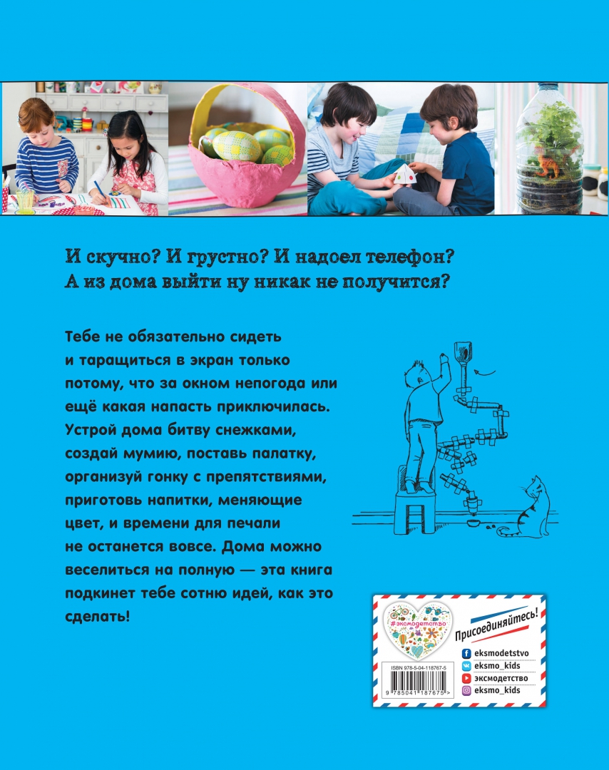 ОписаниеСлучаются такие дни, когда поиграть во дворе ну просто невозможно. Но это вовсе не значит, что придётся целый день пялиться в телевизор, компьютер или смартфон. В это трудно поверить, но книга "100 ИДЕЙ ДЛЯ ДЕТЕЙ" докажет это!Итак, вперед! Сделай копилку идей для борьбы со скукой, устрой в гостиной гонку с препятствиями, научись магическим трюкам и фокусам, сыграй на стаканах, сделай собственный пазл, понаблюдай за извержением вулкана, сними отпечатки пальцев, устрой извержение вулкана, наконец!Попробуй — и ты поймёшь, что в четырёх стенах можно развлекаться по полной, и даже не вспомнить о телефоне и планшете до самого вечера!Для младшего школьного возраста.Случаются такие дни, когда поиграть во дворе ну просто невозможно. Но это вовсе не значит, что придётся целый день пялиться в телевизор, компьютер или смартфон. В это трудно поверить, но книга "100 ИДЕЙ ДЛЯ ДЕТЕЙ" докажет это!Итак, вперед! Сделай копилку идей для борьбы со скукой, устрой в гостиной гонку с препятствиями, научись магическим трюкам и фокусам, сыграй на стаканах, сделай собственный пазл, понаблюдай за извержением вулкана, сними отпечатки пальцев, устрой извержение вулкана, наконец!Попробуй — и ты поймёшь, что в четырёх стенах можно развлекаться по полной, и даже не вспомнить о телефоне и планшете до самого вечера!Для младшего школьного возраста.