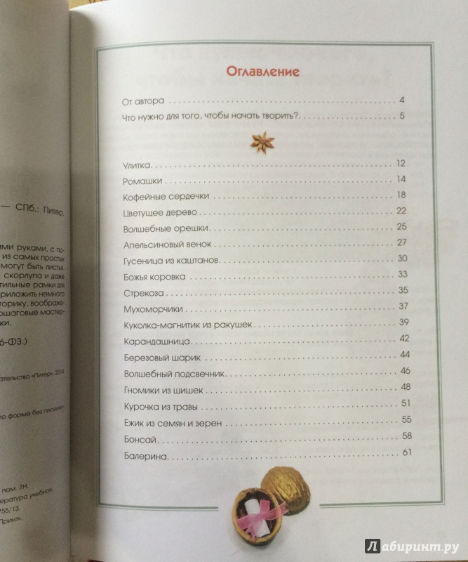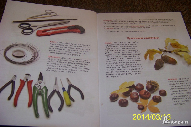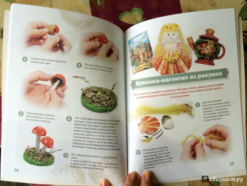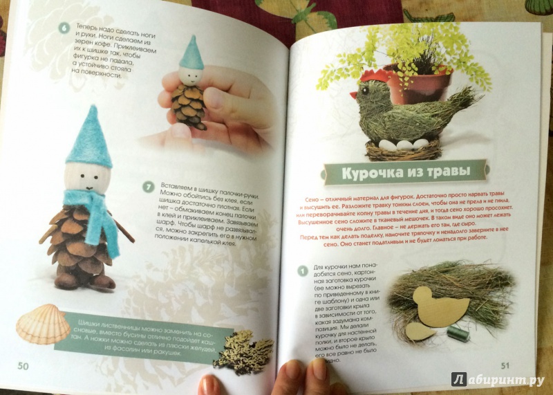ОписаниеАвтор рассказывает и показывает как ребенок 6-10 лет может сделать своими руками, с помощью родителей или самостоятельно, интересные и необычные поделки из самых обычных и материалов, которые в буквальном смысле "валяются под ногами". Это могут быть листья, шишки, желуди, трава, апельсиновая кожура, береста, ракушки, яичная скорлупа и даже камни. Из всего этого получаются смешные зверушки, забавные куклы, стильные рамки для фотографий, замечательные картины и украшения для интерьера, стоит приложить немного усилий и фантазии. Такой вид творчества развивает у малышей мелкую моторику, творческое мышление и учит основам конструирования. Пройдя представленные автором пошаговые мастер-классы, дети смогут в дальнейшем сами придумывать собственные поделки.Автор рассказывает и показывает как ребенок 6-10 лет может сделать своими руками, с помощью родителей или самостоятельно, интересные и необычные поделки из самых обычных и материалов, которые в буквальном смысле "валяются под ногами". Это могут быть листья, шишки, желуди, трава, апельсиновая кожура, береста, ракушки, яичная скорлупа и даже камни. Из всего этого получаются смешные зверушки, забавные куклы, стильные рамки для фотографий, замечательные картины и украшения для интерьера, стоит приложить немного усилий и фантазии. Такой вид творчества развивает у малышей мелкую моторику, творческое мышление и учит основам конструирования. Пройдя представленные автором пошаговые мастер-классы, дети смогут в дальнейшем сами придумывать собственные поделки.