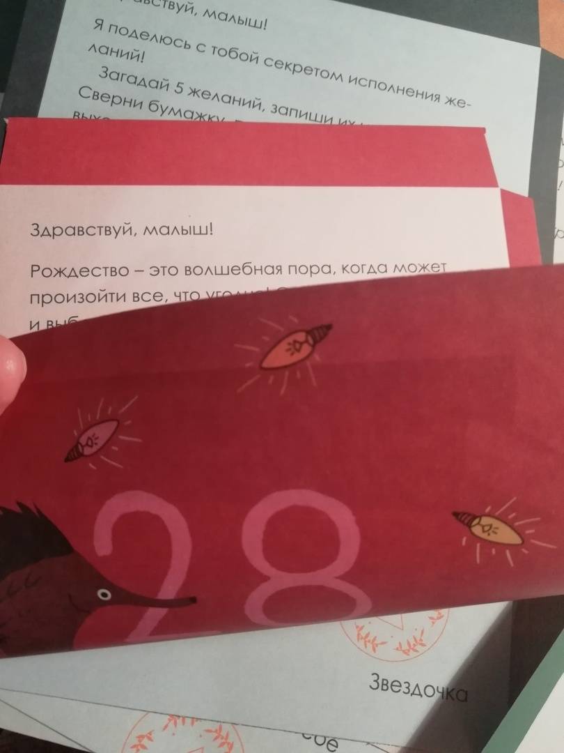 ОписаниеКаждый из нас когда-нибудь писал Деду Морозу. А кто-нибудь получал письмо ОТ Деда Мороза? Мы предлагаем поставить дома наш новогодний почтовый ящик и каждый день выполнять по одному заданию от Деда Мороза и его помощников из разных стран. Выберите нужное вам количество конвертов и заданий, напишите имя ребенка, проставьте дату на конвертах и положите их в почтовый ящик. А утром, открыв одно из писем, малыш найдет увлекательную историю о праздновании Нового года и веселое задание. Помогите ребенку справиться с заданием, и на следующий день вместе с новым письмом его будет ждать награда – красивая почтовая марка (это с нас!) или другой подарок (а это с вас!).В праздничном наборе:- Большой синий почтовый ящик и крючок, чтобы повесить «Новогоднюю почту» на стену- 31 конверт с добрыми письмами от Деда Мороза и его помощников- 6 листов с веселыми играми, задачами и раскраской- 5 творческих заданий, которые помогут, например, создать карнавальную маску или домашний театр теней- 7 новогодних рецептов традиционных блюд в разных странах- 7 волшебных инструкций для создания праздничных поделок и 8 листов цветной бумаги- Подборка чудесных новогодних книги и мультфильмов- 1 лист с 31 наклейкой на каждый день декабря- 5 новогодних стихотворений и 8 новогодних загадок- Множество интересных фактов о новогодних традициях в разных странахДля детей от 3 лет.Сделано в России.СвернутьКаждый из нас когда-нибудь писал Деду Морозу. А кто-нибудь получал письмо ОТ Деда Мороза? Мы предлагаем поставить дома наш новогодний почтовый ящик и каждый день выполнять по одному заданию от Деда Мороза и его помощников из разных стран. Выберите нужное вам количество конвертов и заданий, напишите имя ребенка, проставьте дату на конвертах и положите их в почтовый ящик. А утром, открыв одно из писем, малыш найдет увлекательную историю о праздновании Нового года и веселое задание. Помогите ребенку справиться с заданием, и на следующий день вместе с новым письмом его будет ждать награда – красивая почтовая марка (это с нас!) или другой подарок (а это с вас!).В праздничном наборе:- Большой синий почтовый ящик и крючок, чтобы повесить «Новогоднюю почту» на стену- 31 конверт с добрыми письмами от Деда Мороза и его помощников- 6 листов с веселыми играми, задачами и раскраской- 5 творческих заданий, которые помогут, например, создать карнавальную маску или домашний театр теней- 7 новогодних рецептов традиционных блюд в разных странах- 7 волшебных инструкций для создания праздничных поделок и 8 листов цветной бумаги- Подборка чудесных новогодних книги и мультфильмов- 1 лист с 31 наклейкой на каждый день декабря- 5 новогодних стихотворений и 8 новогодних загадок- Множество интересных фактов о новогодних традициях в разных странахДля детей от 3 лет.Сделано в России.СвернутьСвернуть