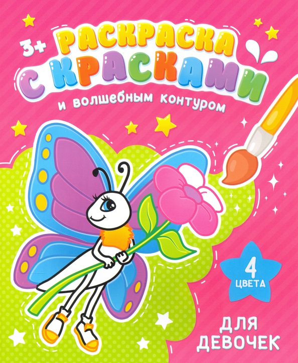 Раскраска с красками и волшебным контуром ДЛЯ ДЕВОЧЕК (52711)