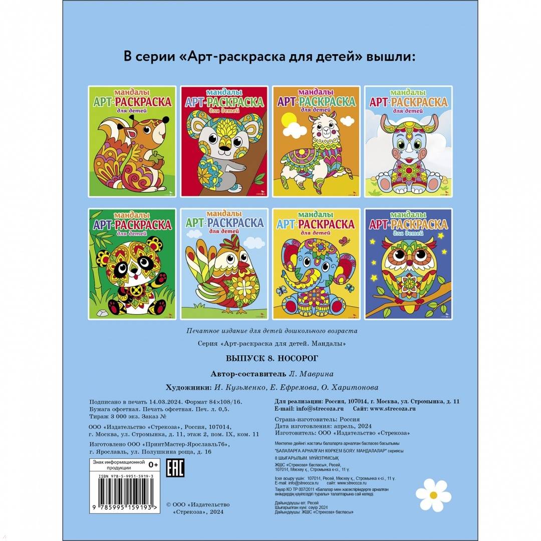 --Арт-раскраска для детей. Мандалы. Выпуск 8. НосорогПлетем из резиночекВиммельбухи и находилкиТематические альбомы и ежедневникиПесенники. Организация праздниковРаскраски для детейОпыты, эксперименты, фокусыМастерим своими рукамиРазвивающие и активные игры для детейГоловоломки, игры, заданияБумажные куклыРисование для детейОригамиКонструирование из бумагиАппликацииАльбомы с наклейкамиЛепим из пластилина