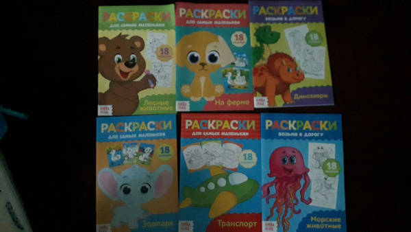 ОписаниеС серией раскрасок для самых маленьких ребёнок познакомится с лесными зверьми, животными Африки, обитателями фермы, а также изучит и разрисует основные виды транспорта.Издания адаптированы специально для малышей, все элементы иллюстраций крупные, картинки простые и понятные.КомплектацияРаскраска для малышей "Зоопарк"Раскраска в дорогу "Динозавры"Раскраска в дорогу "Морские животные"Раскраска для малышей "На ферме"Раскраска для малышей "Транспорт"Раскраска для малышей "Лесные животные"Рекомендовано детям от 2 лет.С серией раскрасок для самых маленьких ребёнок познакомится с лесными зверьми, животными Африки, обитателями фермы, а также изучит и разрисует основные виды транспорта.Издания адаптированы специально для малышей, все элементы иллюстраций крупные, картинки простые и понятные.КомплектацияРаскраска для малышей "Зоопарк"Раскраска в дорогу "Динозавры"Раскраска в дорогу "Морские животные"Раскраска для малышей "На ферме"Раскраска для малышей "Транспорт"Раскраска для малышей "Лесные животные"Рекомендовано детям от 2 лет.