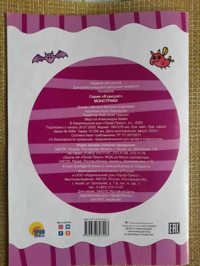 Объем, стр. 16 ISBN 978-5-378-30720-3 Автор Заржецкая Алла Художник Заржецкая Алла Серия Раскраски А4 Год издания книги 2020 Тип обложки Мягкий переплет Иллюстрации Черно-белые Вес, г 56г Размеры 275х198х1 мм - Отзывы