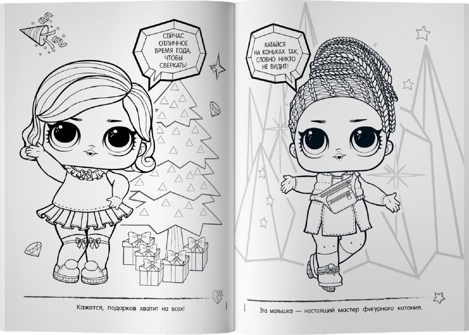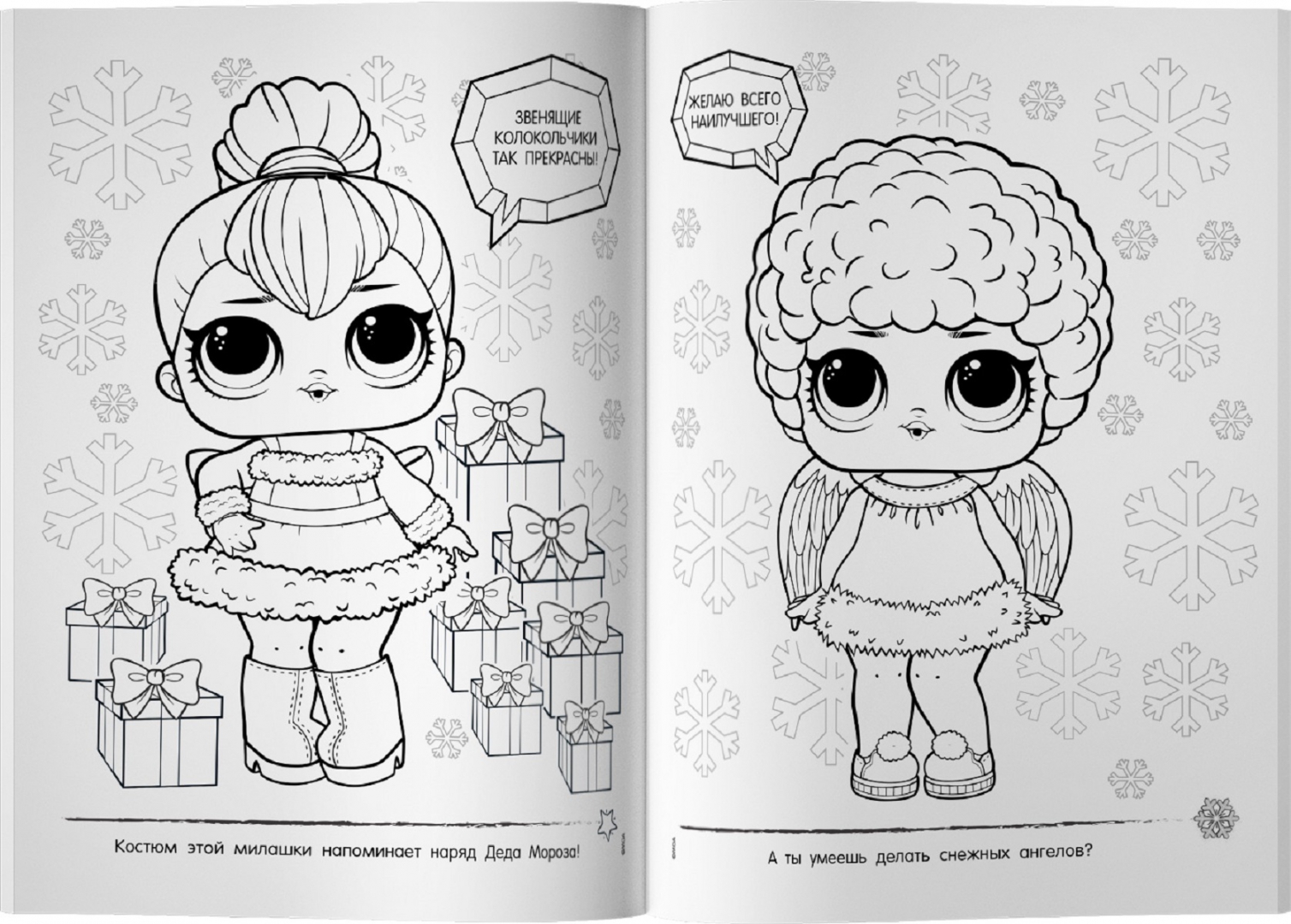 ОписаниеСамая праздничная раскраска с куколками L.O.L. Surprise! Зима - время подарков, ярких огней, блеска… и стиля. Добавь цвета самым новогодним куколкам L.O.L. Surprise! Пригодится все: карандаши, фломастеры, краски, а если получится добавить блестки, будет просто улет!Для младшего школьного возраста.Самая праздничная раскраска с куколками L.O.L. Surprise! Зима - время подарков, ярких огней, блеска… и стиля. Добавь цвета самым новогодним куколкам L.O.L. Surprise! Пригодится все: карандаши, фломастеры, краски, а если получится добавить блестки, будет просто улет!Для младшего школьного возраста.